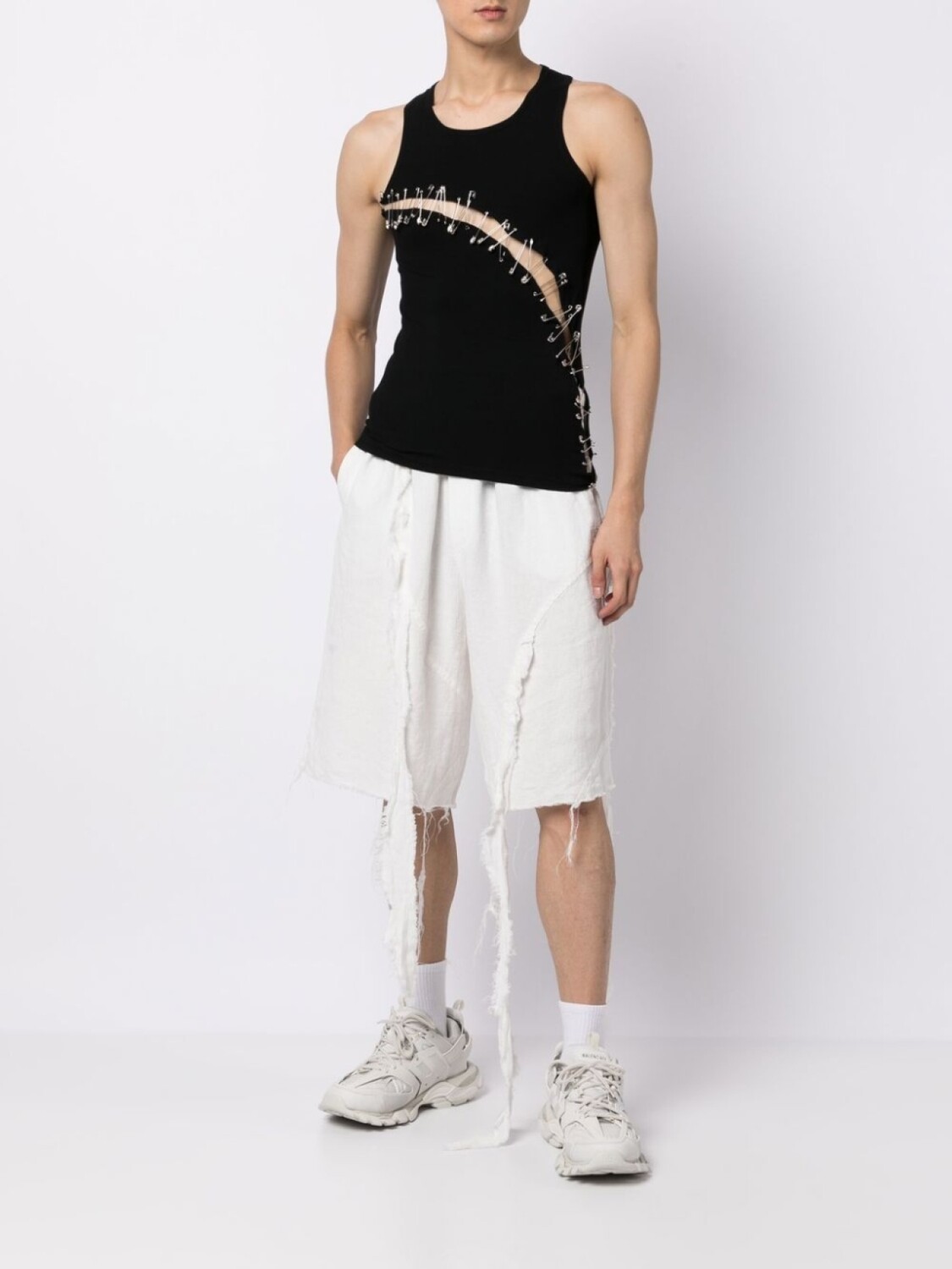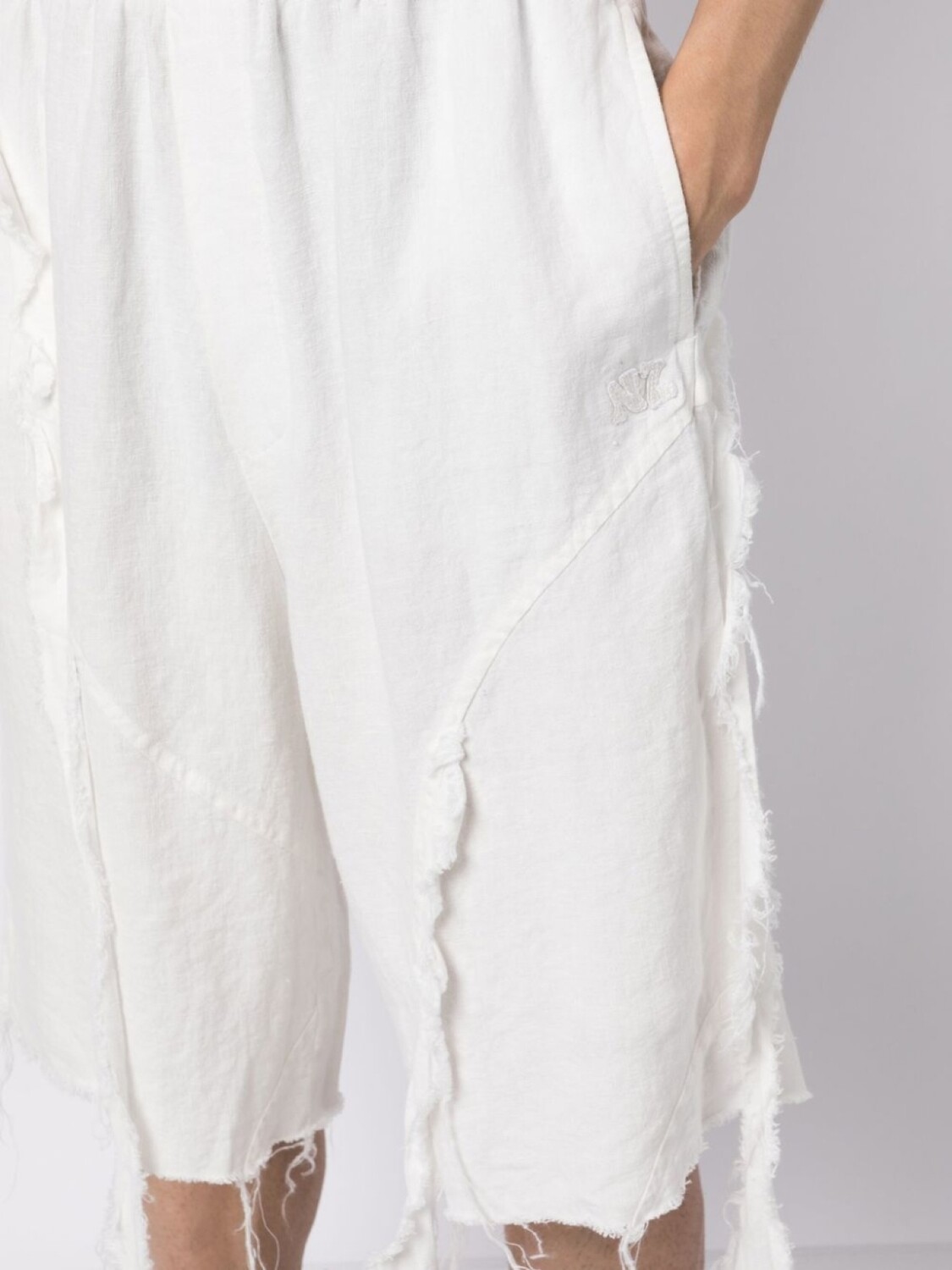 Подробнее о товаре: • белый • пенька • эластичный пояс • два прорезных кармана по бокам • необработанные детали • длина по колено • Это унисекс-модель. Обратите внимание, что для нее используется мужская размерная сетка. • Ответственный выбор: Этот товар как минимум на 50% состоит из материалов, которые признаны более безопасными для окружающей среды или сертифицированы независимыми организациями.