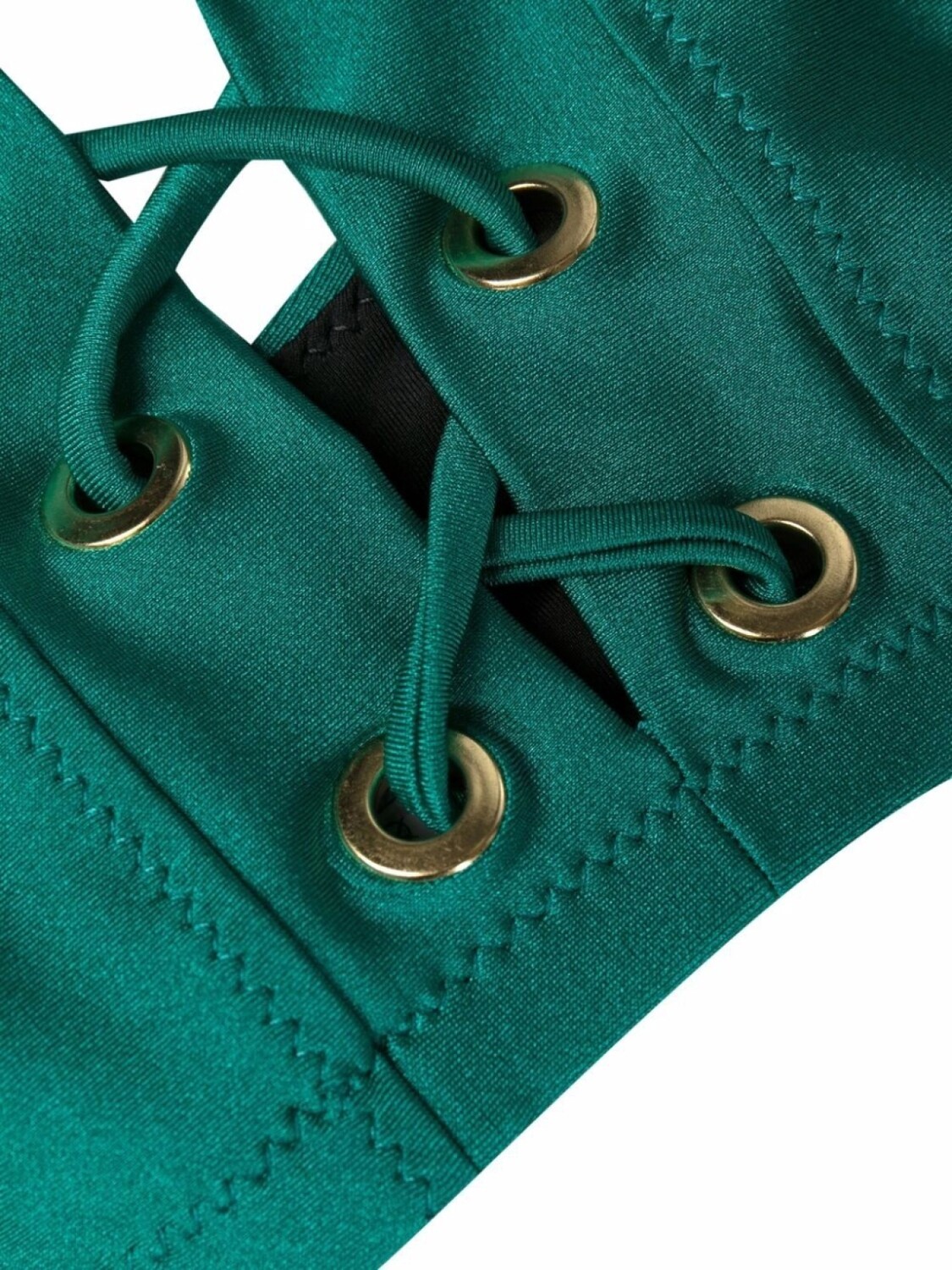 Эластичная модель, покрытие с эффектом металлик, перекрестные ремешки, тональная строчка, широкое горлышко, завязки спереди, завышенная талия и завязки по бокам. Пожалуйста, примеряйте купальники и пляжные шорты только поверх собственного белья.