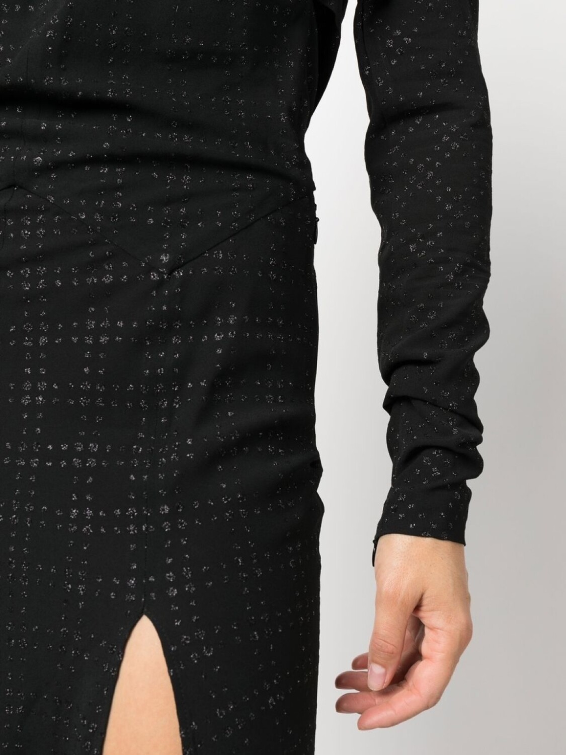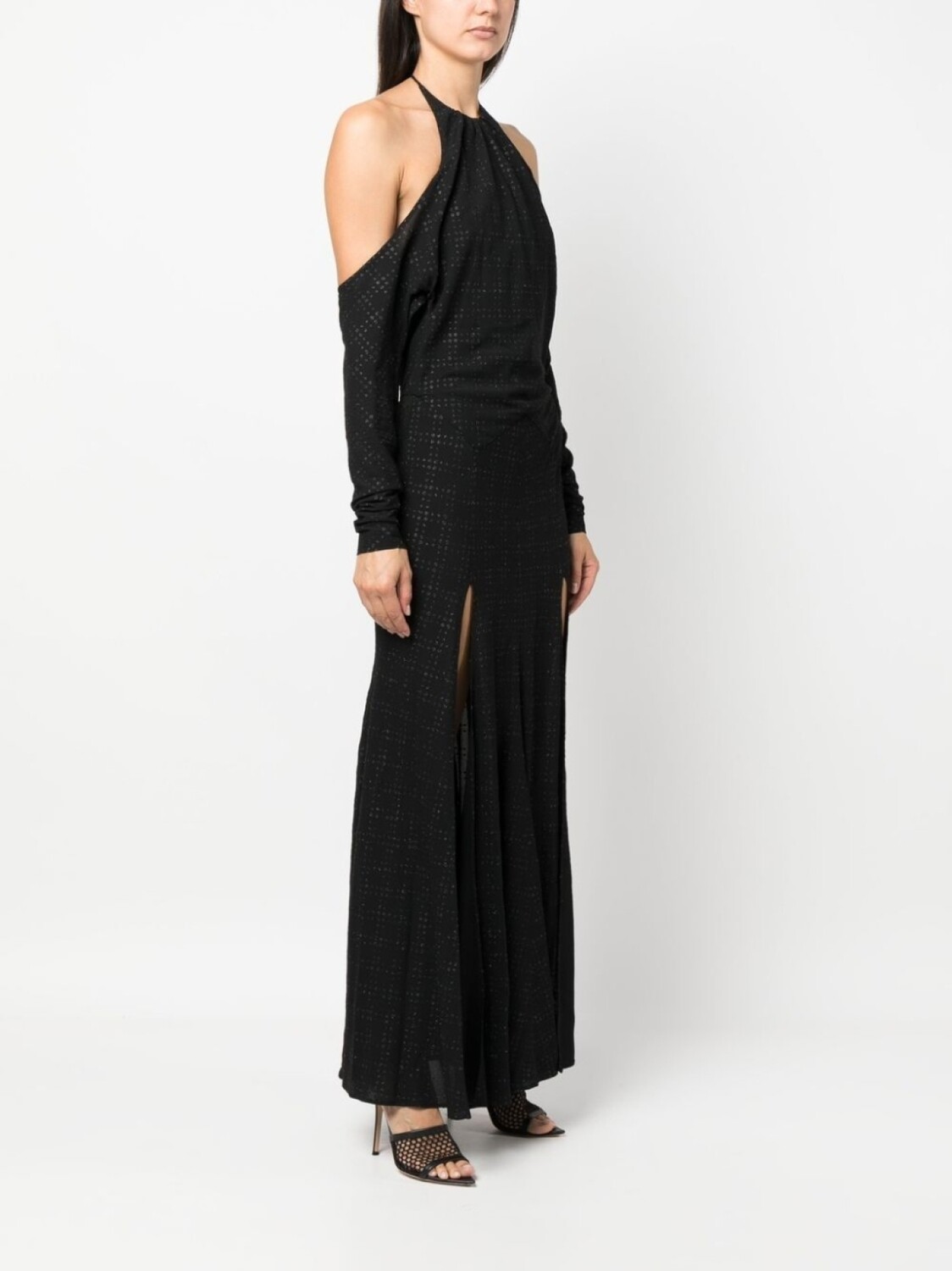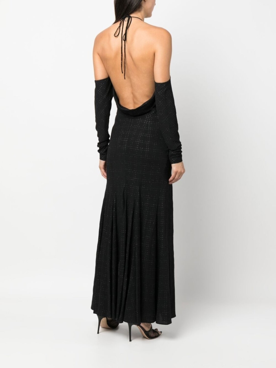 Вырезные детали, завязки вокруг шеи, длинные рукава и длинная модель.