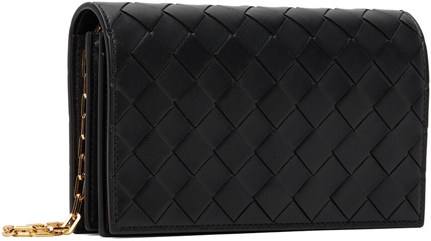 Сумка через плечо из зерненой овечьей кожи Intrecciato черного цвета.