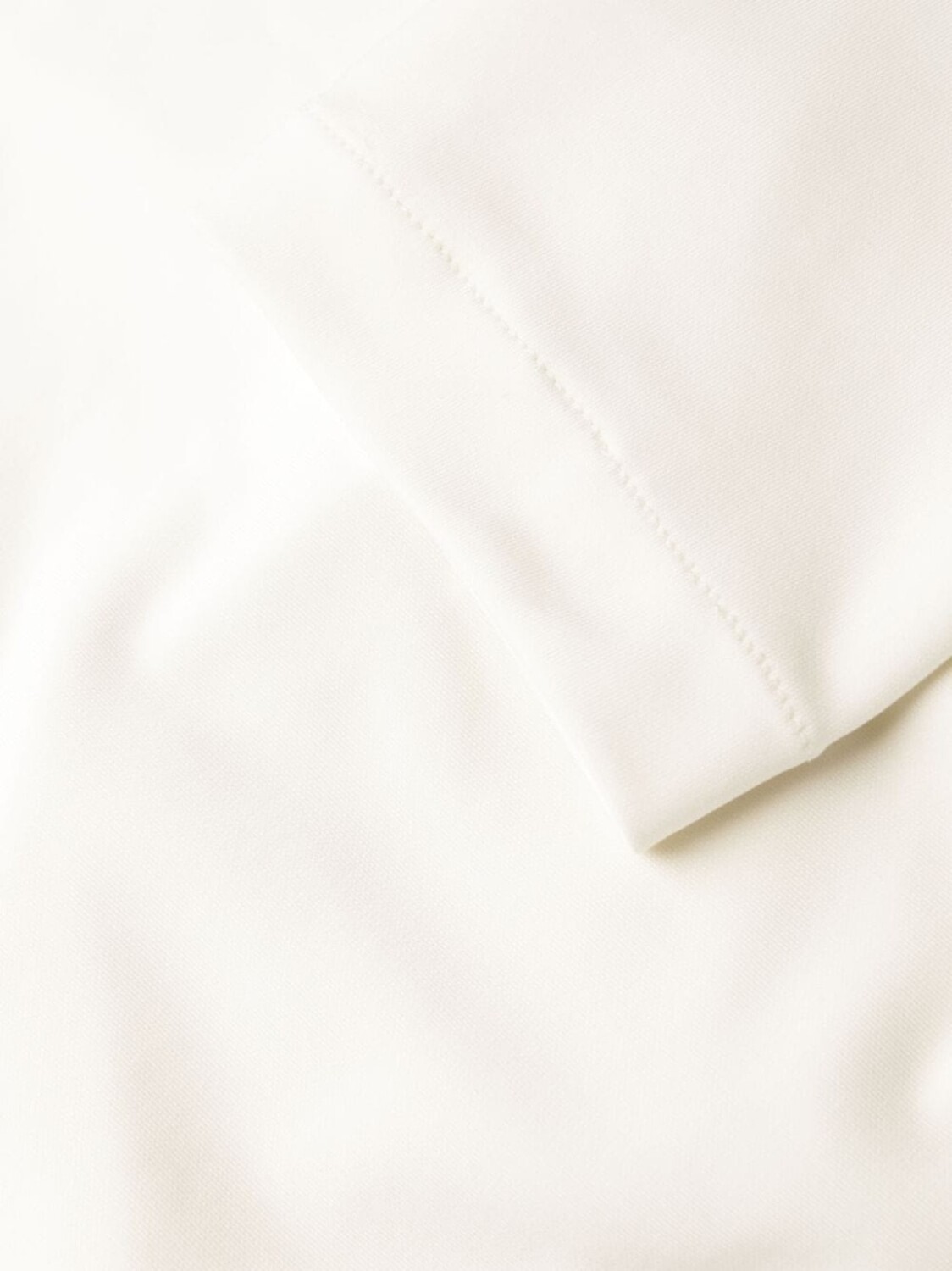 Белый, стрейчевая ткань, детали с оборками, драпировка и длинные рукава.