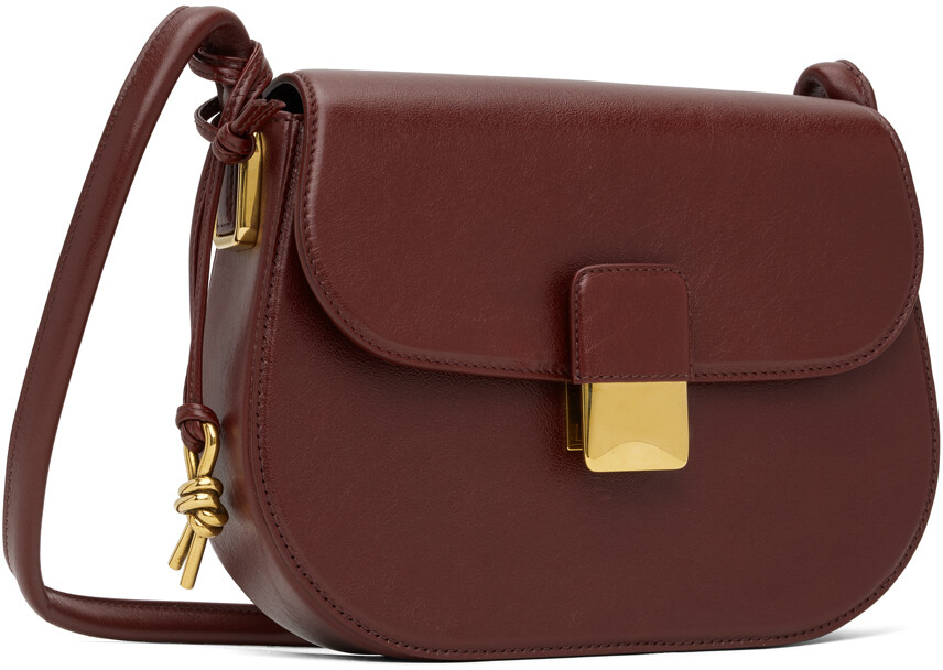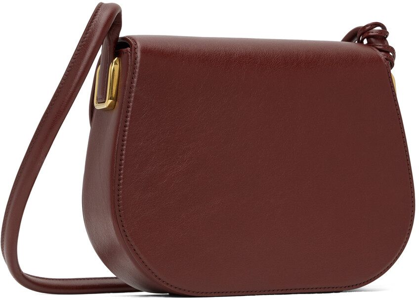 Сумка через плечо из зернистой телячьей кожи бордового цвета.