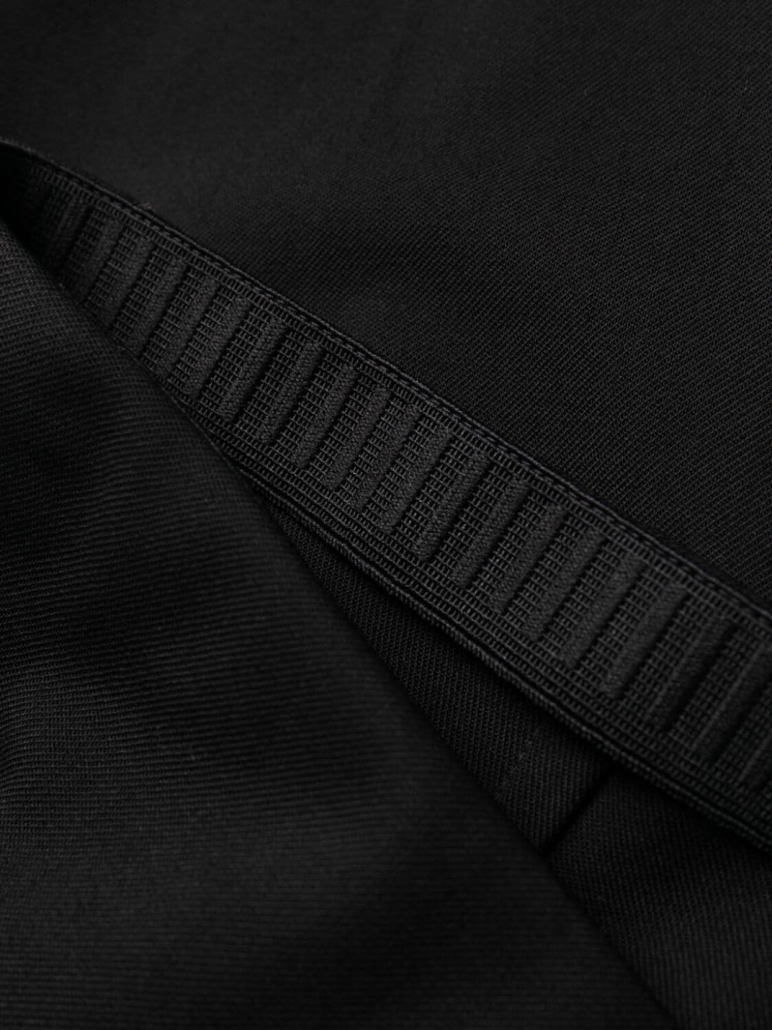 Черный, смесовая шерсть, средняя посадка, потайная застежка на молнии сбоку, прямой крой и укороченная длина.