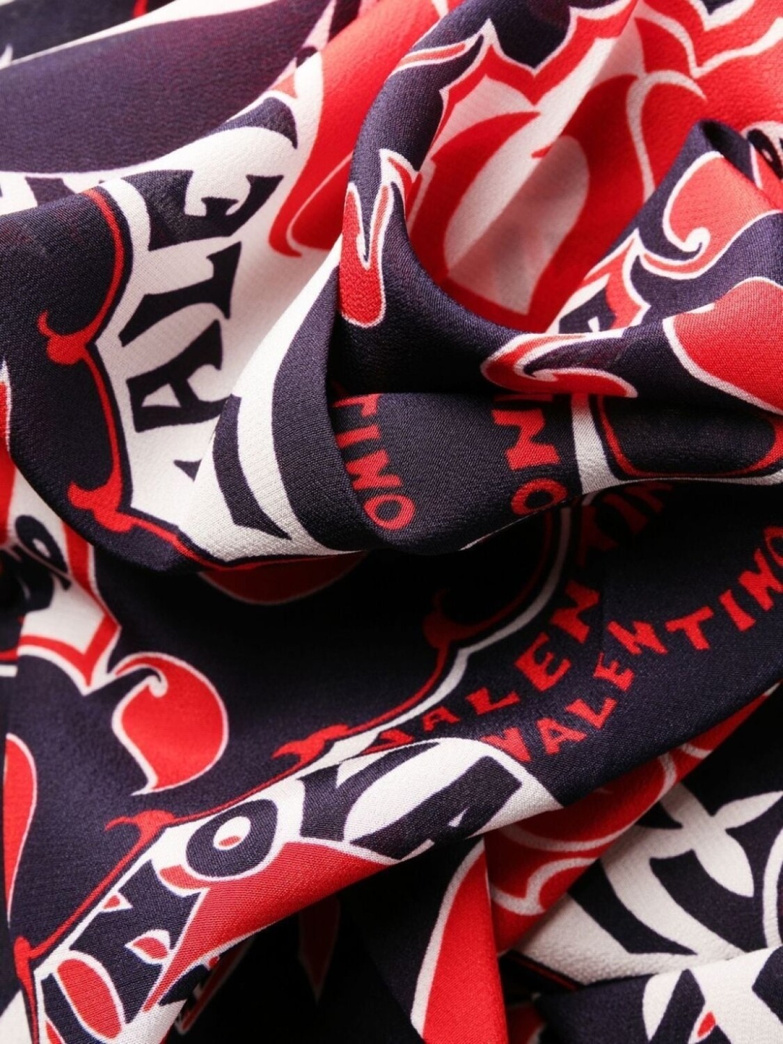 Разноцветный, шелк, воротничок с бантом, сплошной принт с логотипом, цепочка, плиссированная юбка и длина миди.