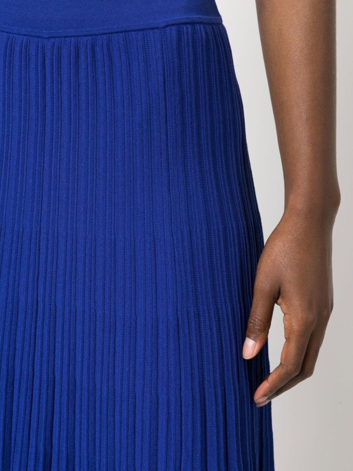 Синий, плиссированная модель, эластичный пояс и длина миди.