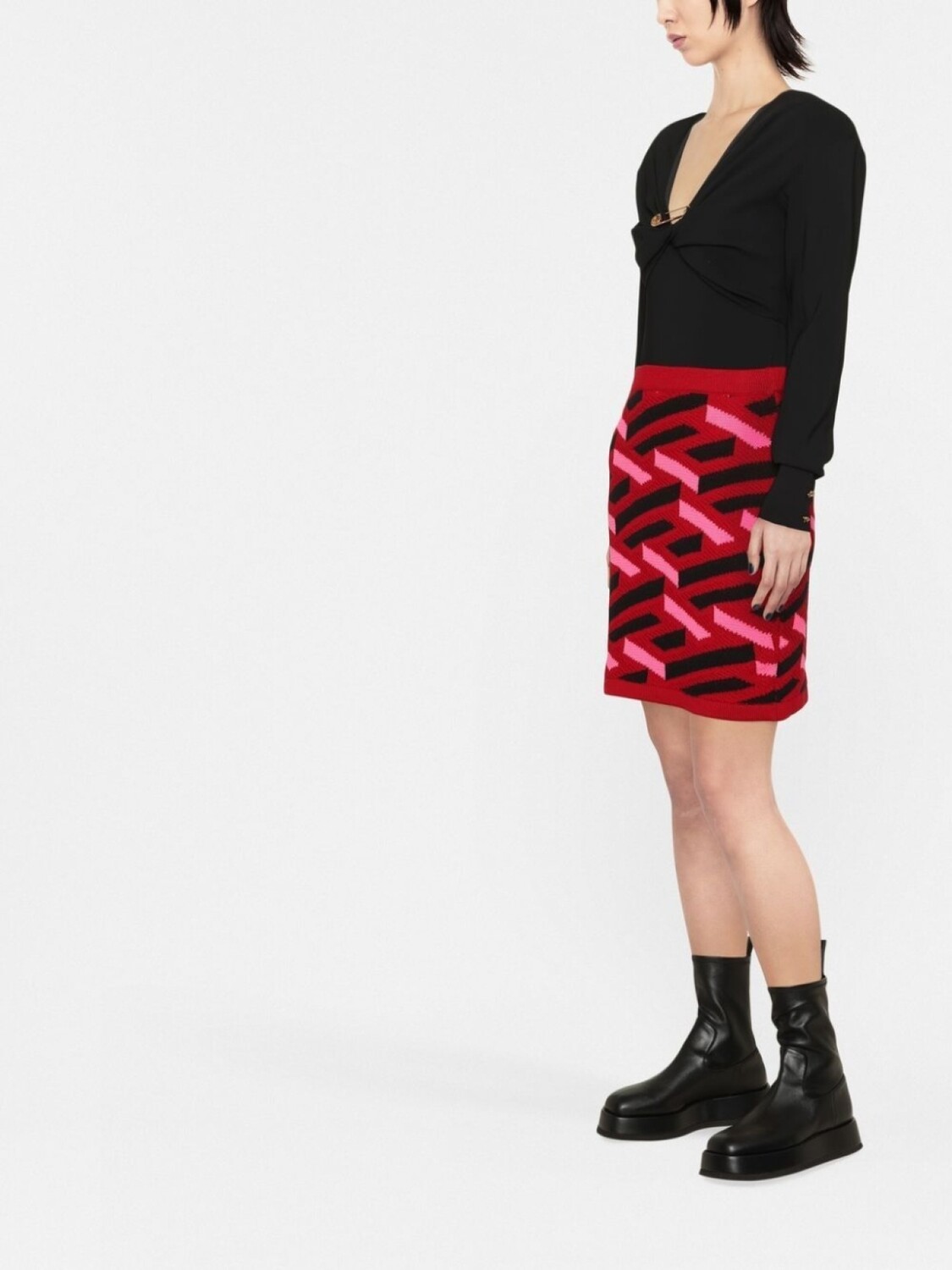 красный, фуксия, черный смесовая необработанная шерсть вязка в технике интарсия отделка в рубчик без застежки
