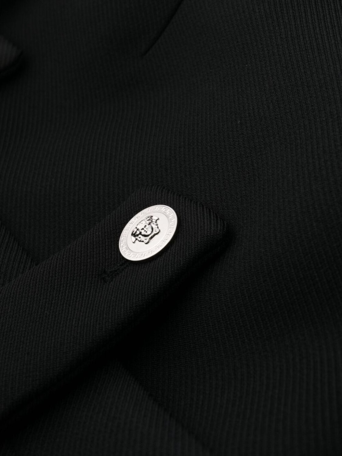 Черный, ткань с твиловым переплетением, пуговицы с декором Medusa Head, квадратный вырез, потайная застежка на молнии сзади, широкие бретели, прямой подол и длина до бедер.