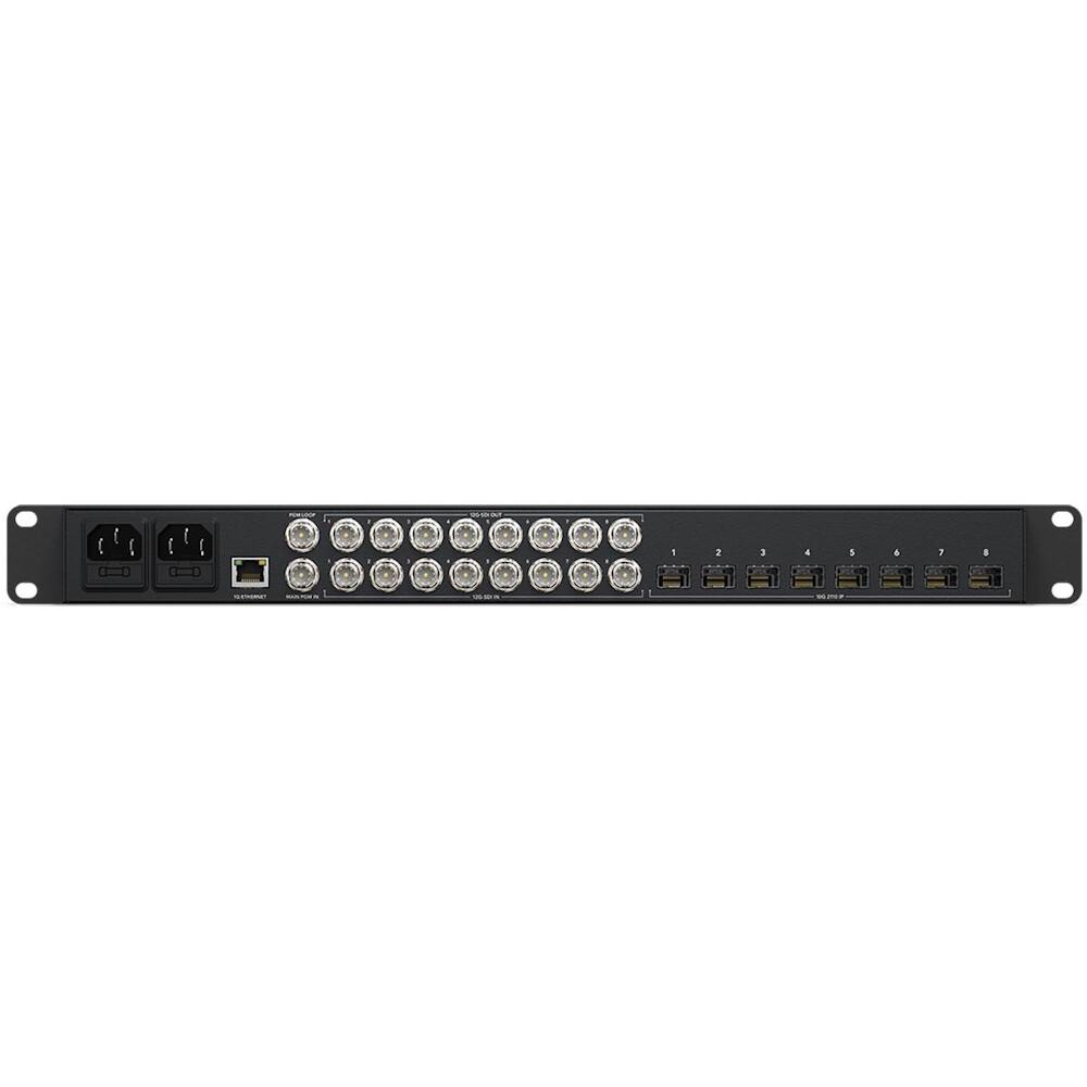 IP-конвертер Blackmagic 2110 8x12G SFP - Этот конвертер предназначен для добавления IP-видео SMPTE-2110 в вещательное оборудование 12G-SDI. Он имеет конструкцию высотой 1RU с 8 независимыми двунаправленными IP-видеоконвертерами 12G-SDI в SMPTE-2110 с модулями SFP, что позволяет использовать оптоволоконные модули Ethernet на больших расстояниях. Каждый канал имеет вход 12G-SDI, но есть даже программный обратный вход 12G-SDI, который передает сигнал на все каналы. Это означает, что вы можете отправить один вход 12G-SDI на все подключенные устройства через одно соединение!