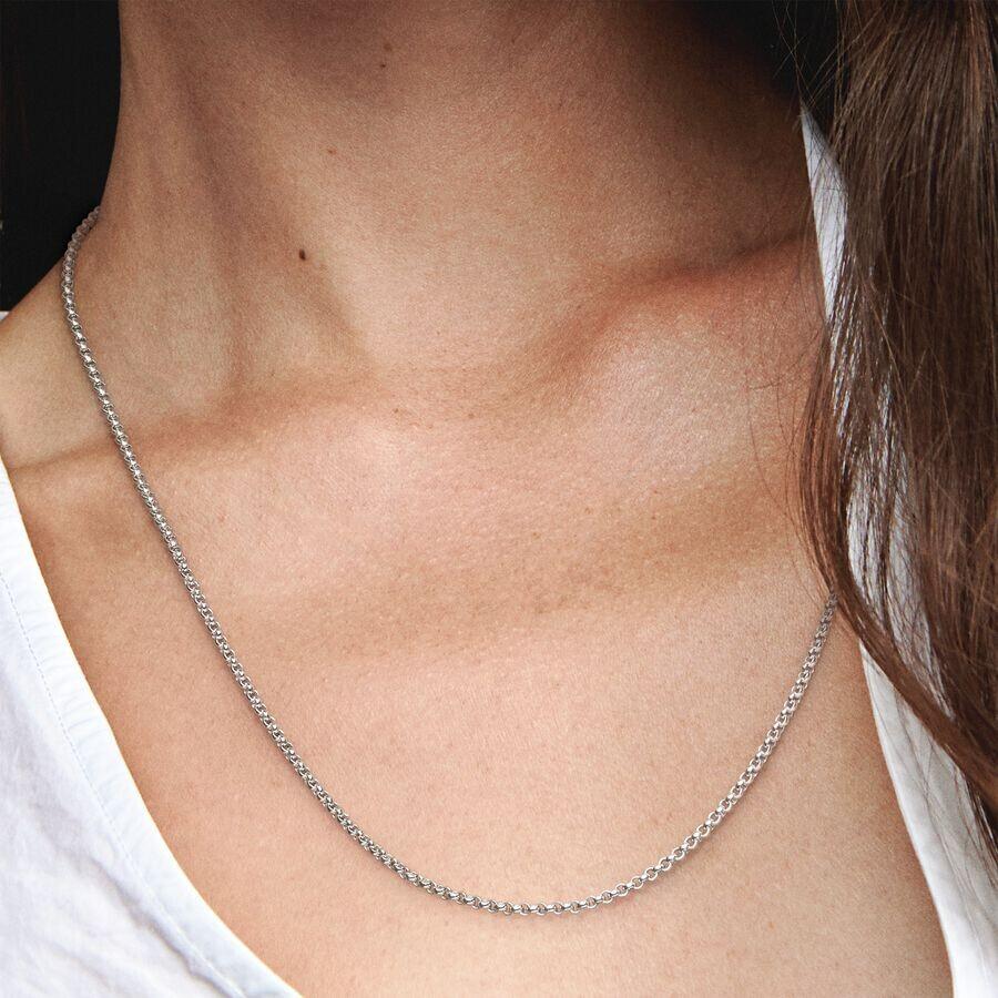 Откройте для себя новый способ носить любимые подвески с колье Rolo. Простой аксессуар, отделанный вручную из стерлингового серебра, регулируется в трех вариантах длины. Это колье можно носить только с подвесками Pandora O маленького и среднего размера. Прикрепите кулон со сверкающей застежкой, чтобы заявить о себе. В сочетании с серьгами стерлингового серебра, украшенными камнями, вы создадите единый образ и придадите ему дополнительный блеск.