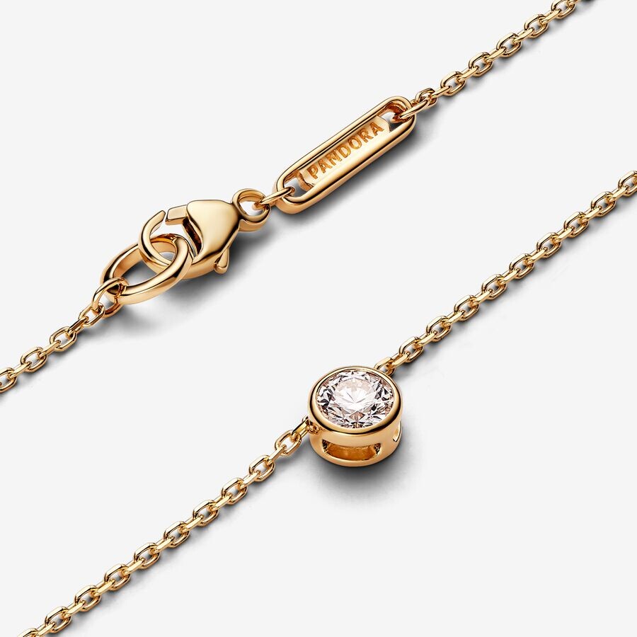 Колье Pandora Era Bezel из 14-каратного золота с выращенным в лаборатории бриллиантом представляет собой кулон с бриллиантом весом 0,25 карата в оправе из 14-каратного золота, оформленный в элегантном современном стиле. Вырезы на задней и боковых сторонах безеля пропускают свет, придавая ему невероятное сияние. Подвеска свободно перемещается по цепочке, длина которой регулируется в двух вариантах. Классика, которая блестяще возвышается над временем, и является идеальным дополнением вашего повседневного образа.