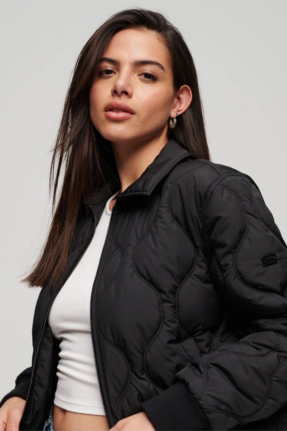 Укороченный жакет-студия с контрастной отделкой Superdry, черный 9 164₽