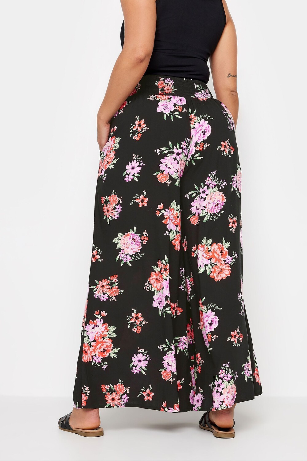 Широкие брюки с присборками и цветочным принтом Yours, черный