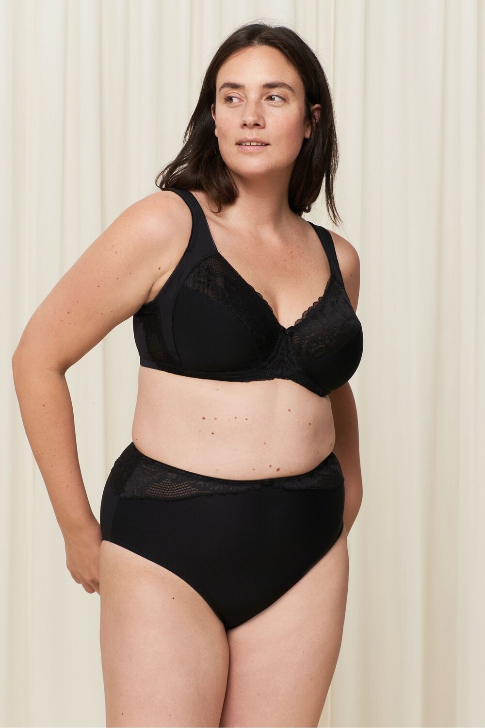 Кружевной современный хлопковый бюстгальтер на косточках Triumph, черный