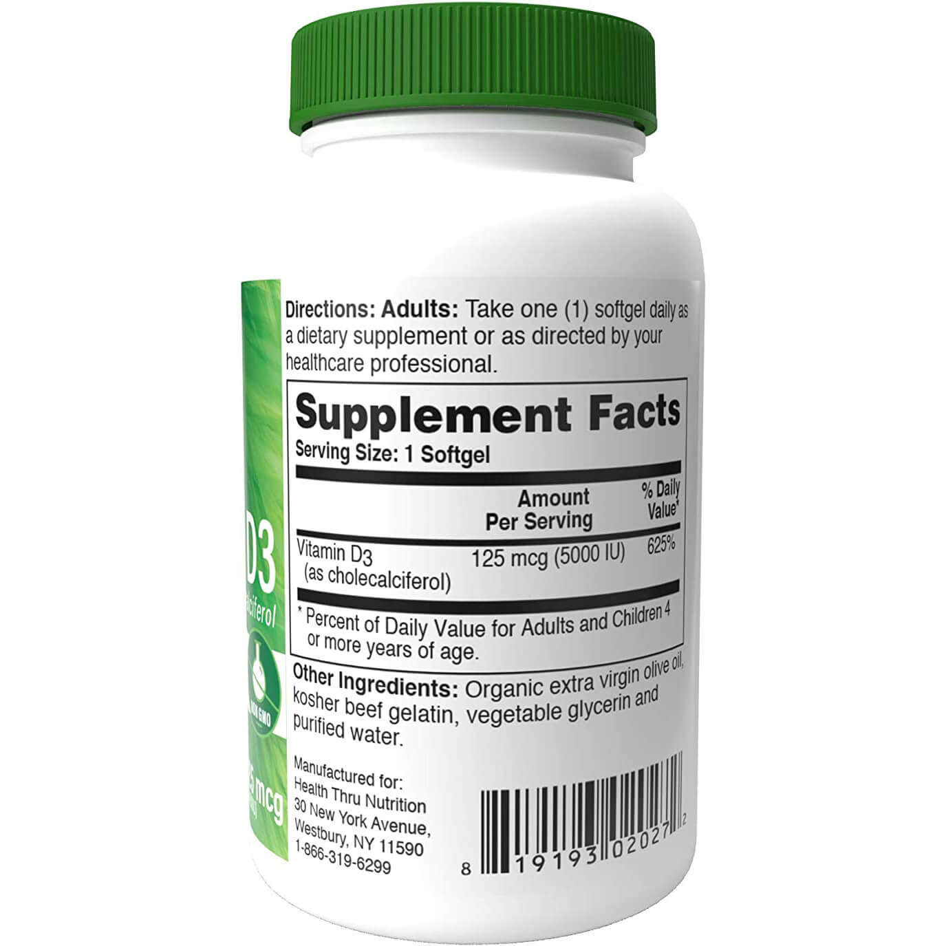 Витамин D3 Health Thru Nutrition - это дополнительный источник витамина D3, который помогает поддерживать здоровье костей, иммунной системы и сердечно-сосудистой системы. Каждая бутылочка содержит 100 мягких желатиновых капсул. Витамин D3 является важным компонентом для здоровья человека, так как он помогает усваивать кальций и фосфор, что способствует росту и развитию костной ткани. Кроме того, витамин D3 укрепляет иммунную систему, что помогает организму бороться с инфекциями и заболеваниями.