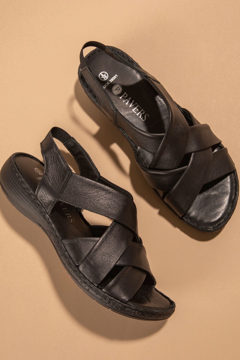Кожаные босоножки с перекрестными ремешками Pavers, черный 5 154₽
