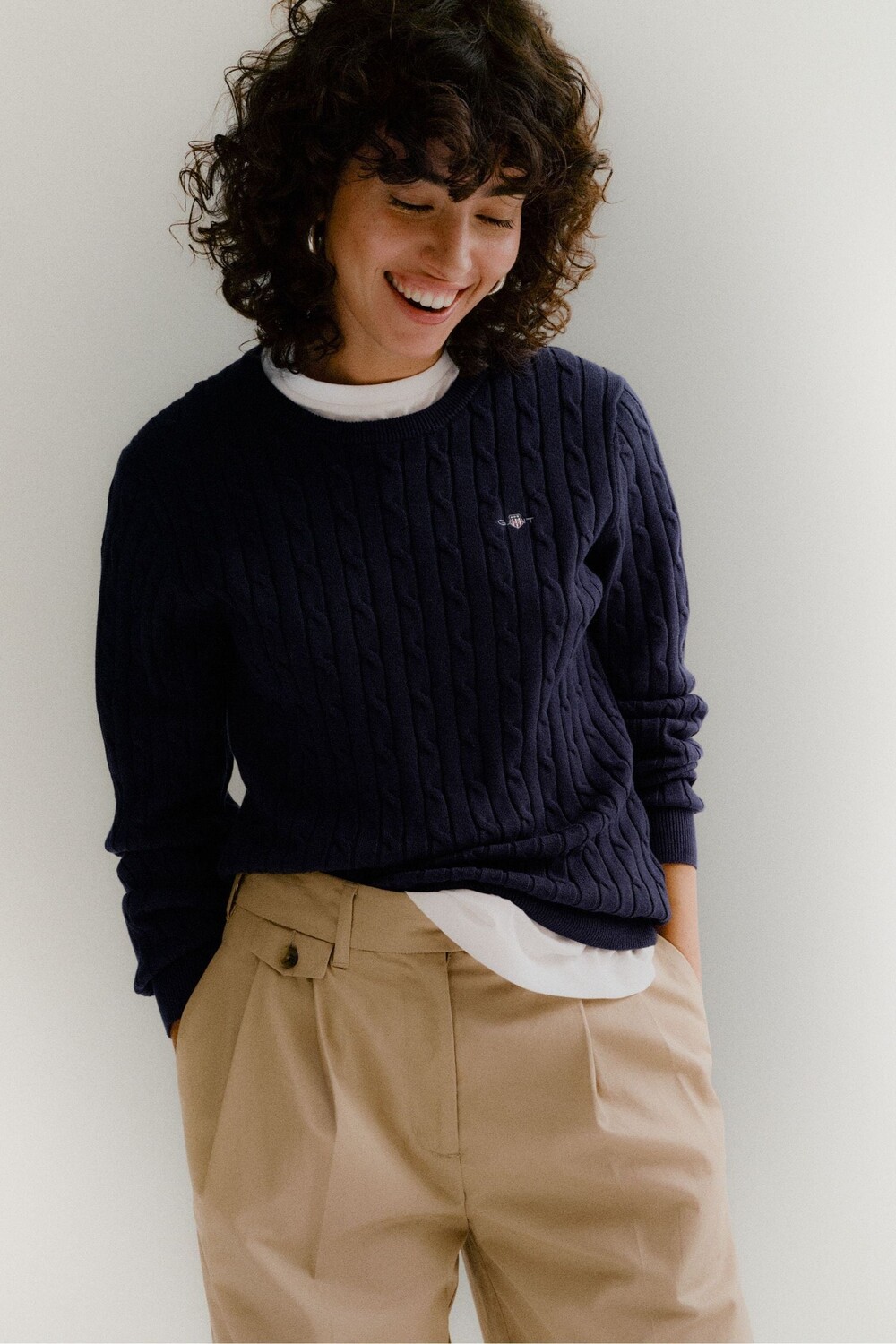 Свитер косой вязки из эластичного хлопка Gant, синий