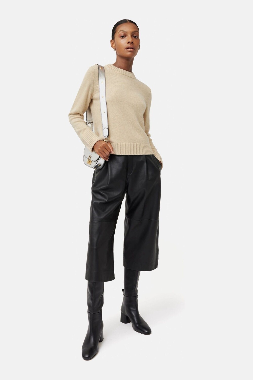 Компактный шерстяной свитер с круглым вырезом Jigsaw, бежевый