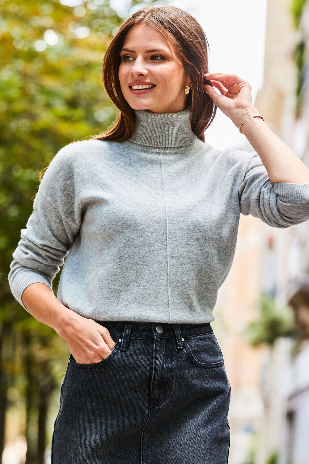 Кашемировый свитер с высоким воротником Sosandar, серый