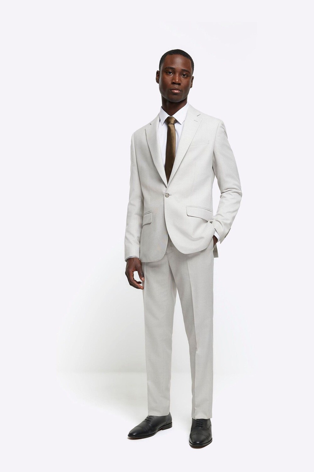 Костюмные брюки узкого кроя «добби» River Island, бежевый