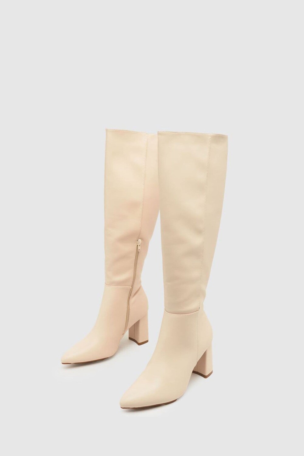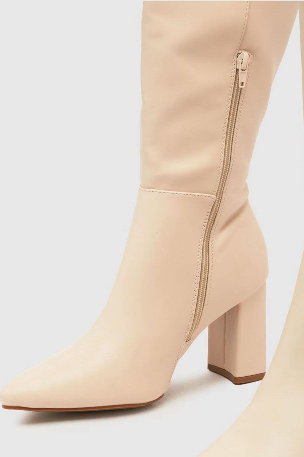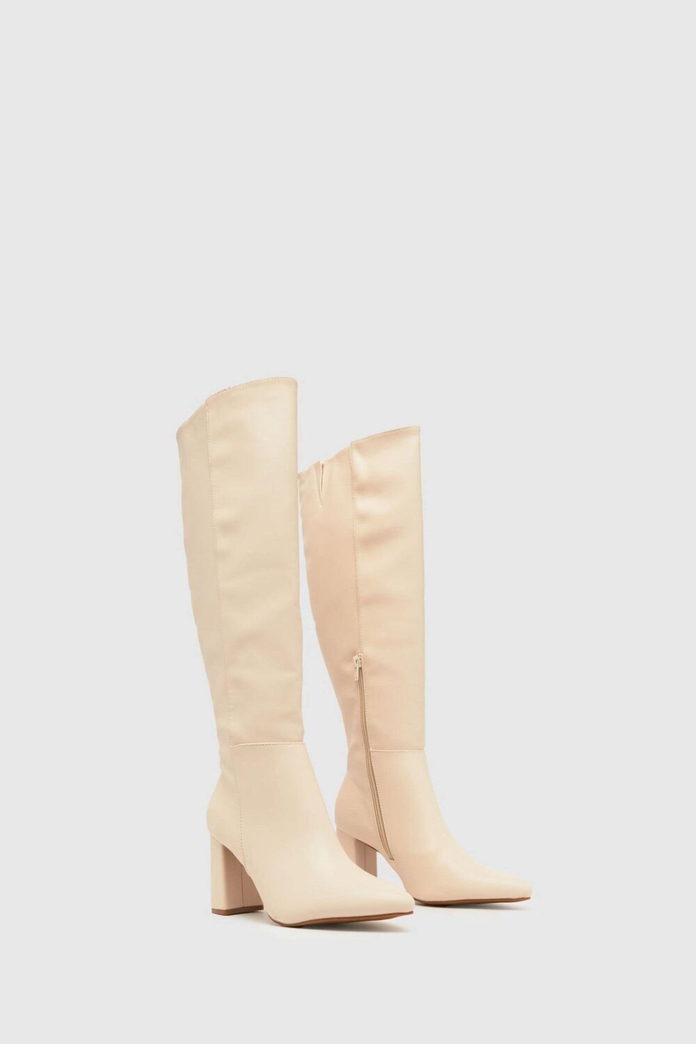 Кремовые сапоги до колена на толстом каблуке Schuh, бежевый