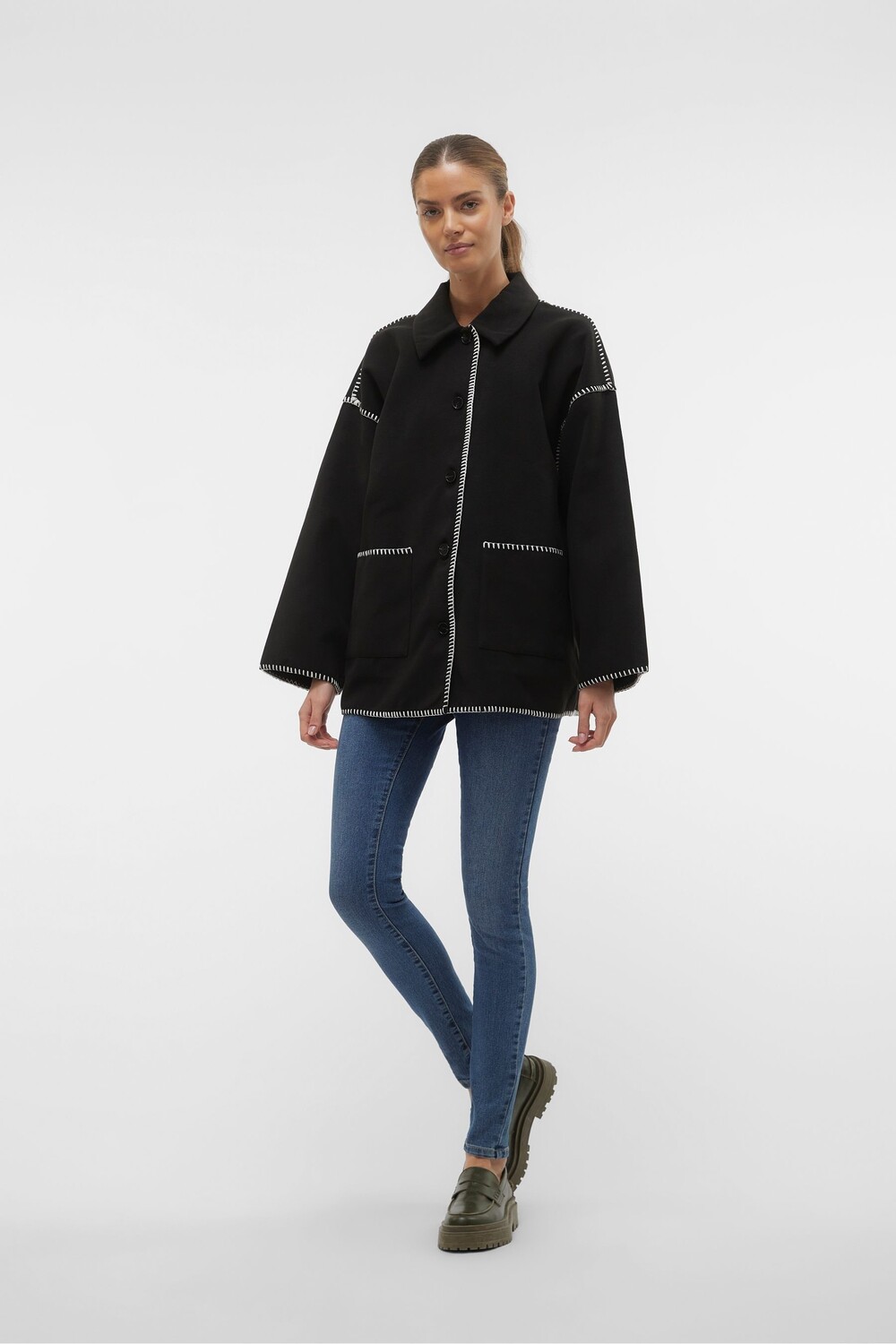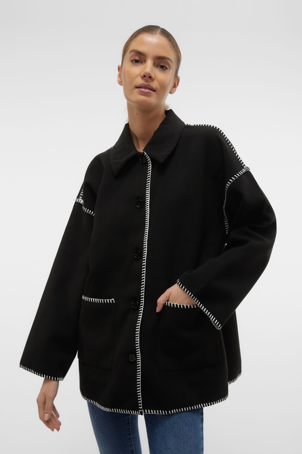 Куртка оверсайз на пуговицах с вышивкой Vero Moda, черный