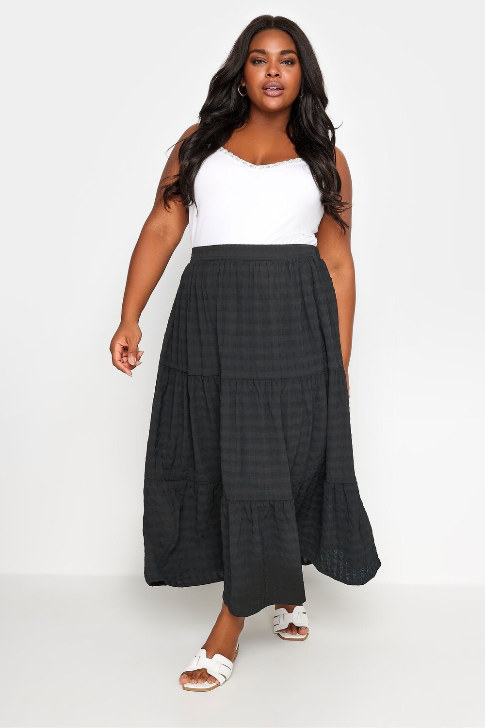 Многослойная клетчатая юбка миди Yours, черный 3 771₽