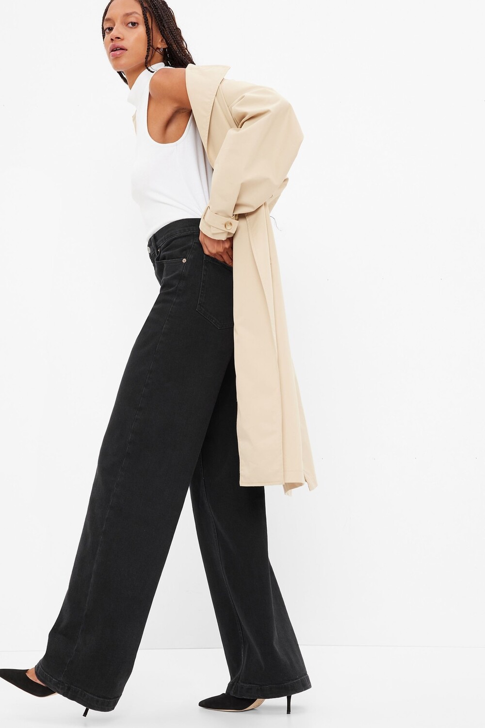 Джинсы с высокой талией и широкими штанинами Gap, черный