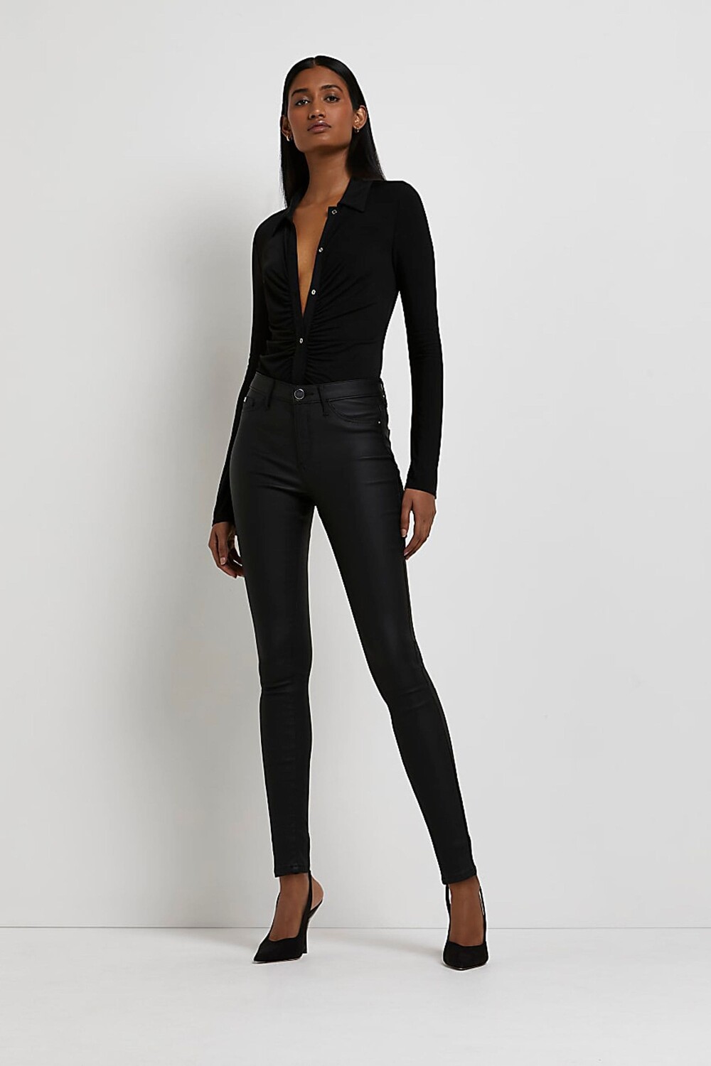 Джинсы скинни средней посадки с покрытием River Island, черный