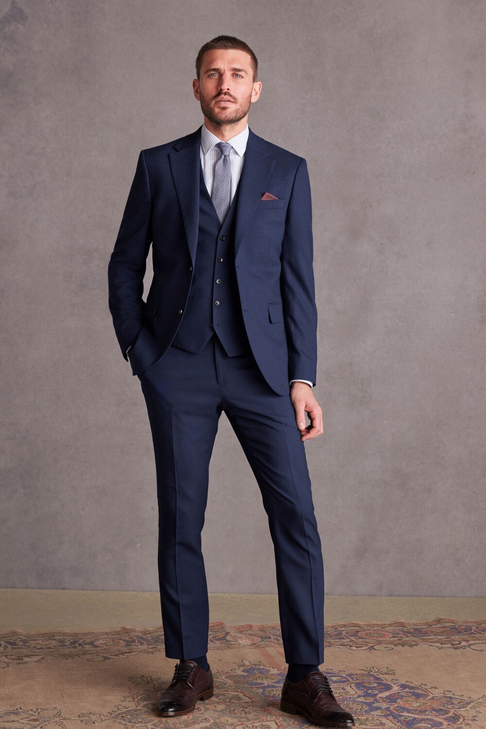 Фирменный костюм толленьо приталенного кроя: брюки Next, синий 18 493₽