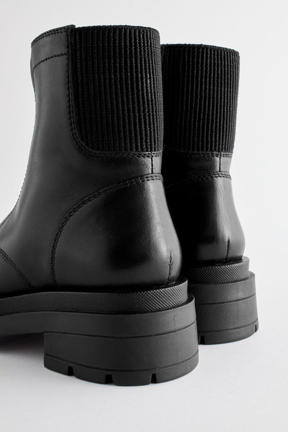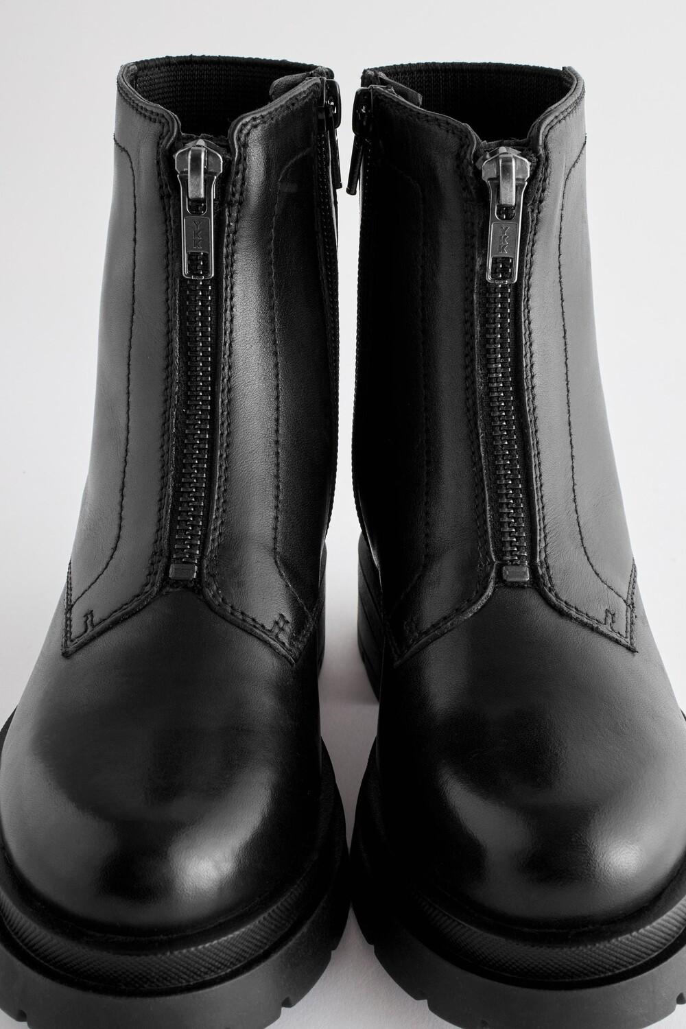 Кожаные массивные ботинки челси на молнии спереди Next, черный
