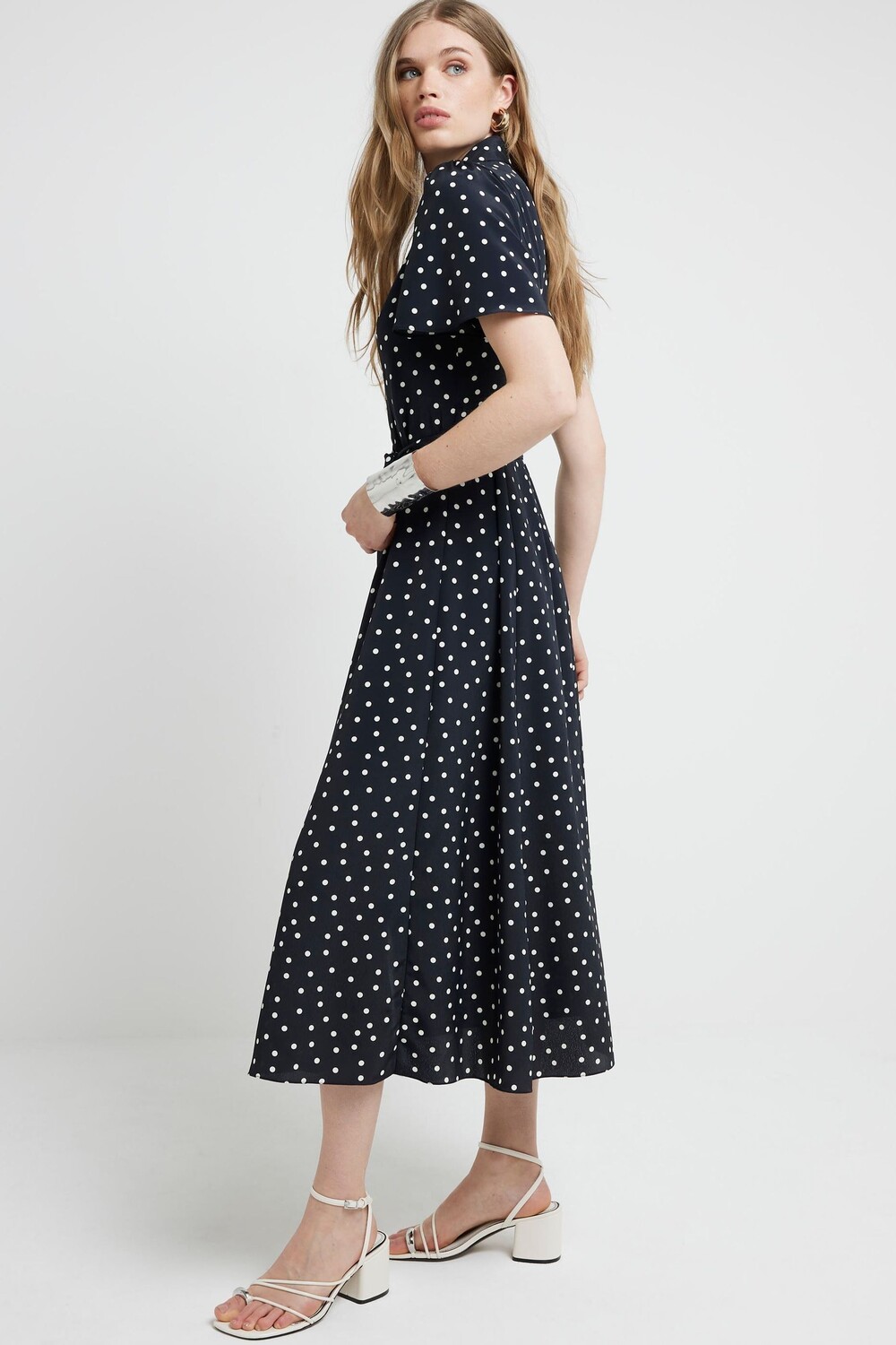 Платье-Рубашка в горошек с поясом River Island, черный