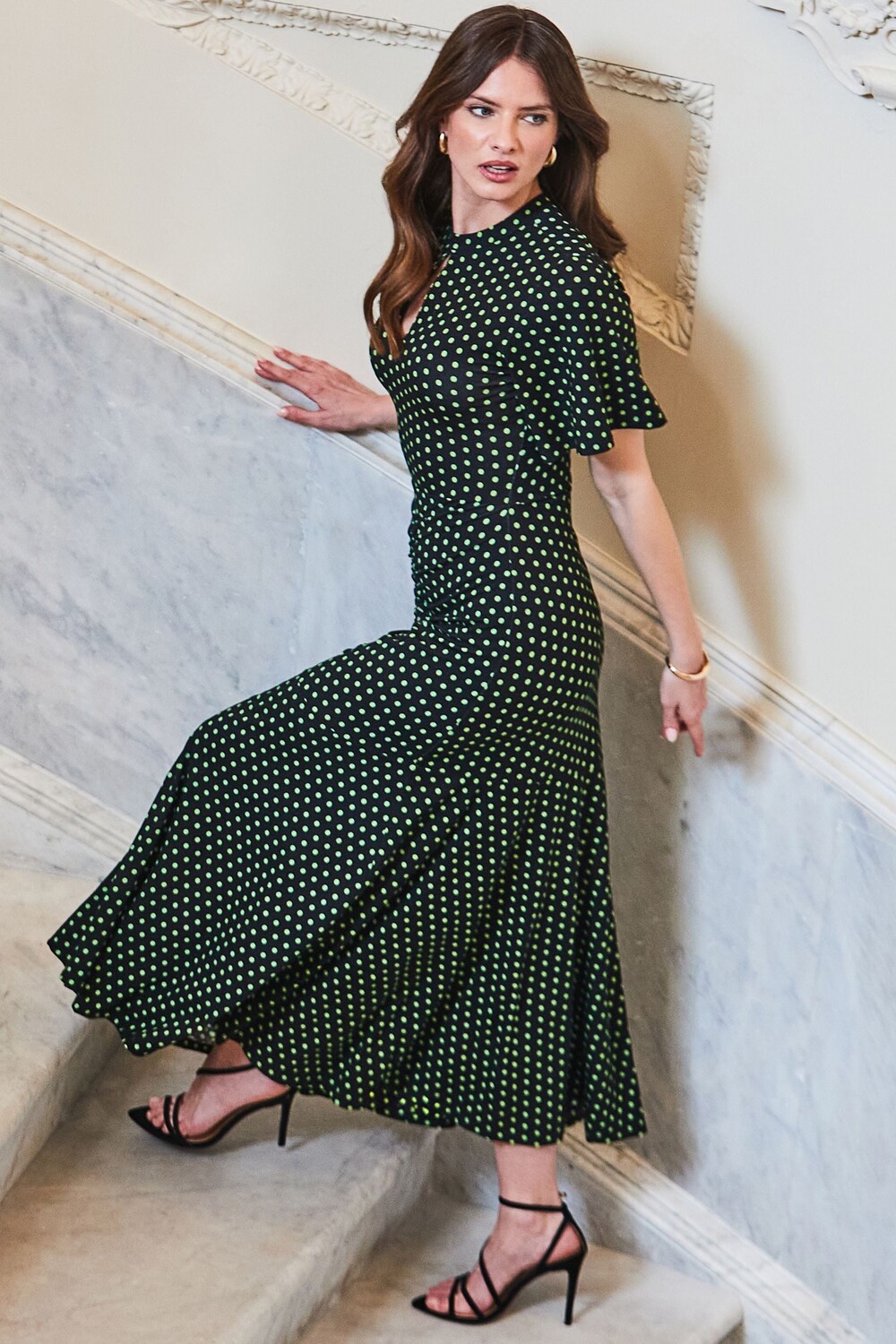 Платье из джерси в горошек с каплевидным вырезом Sosandar, черный