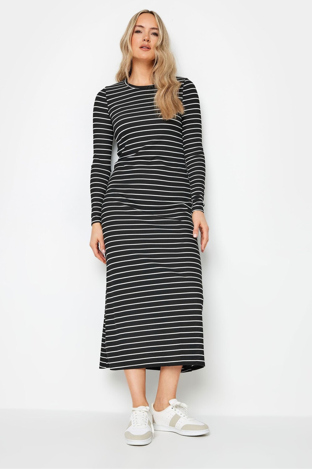 Платье в рубчик с длинными рукавами и полосками Long Tall Sally, черный