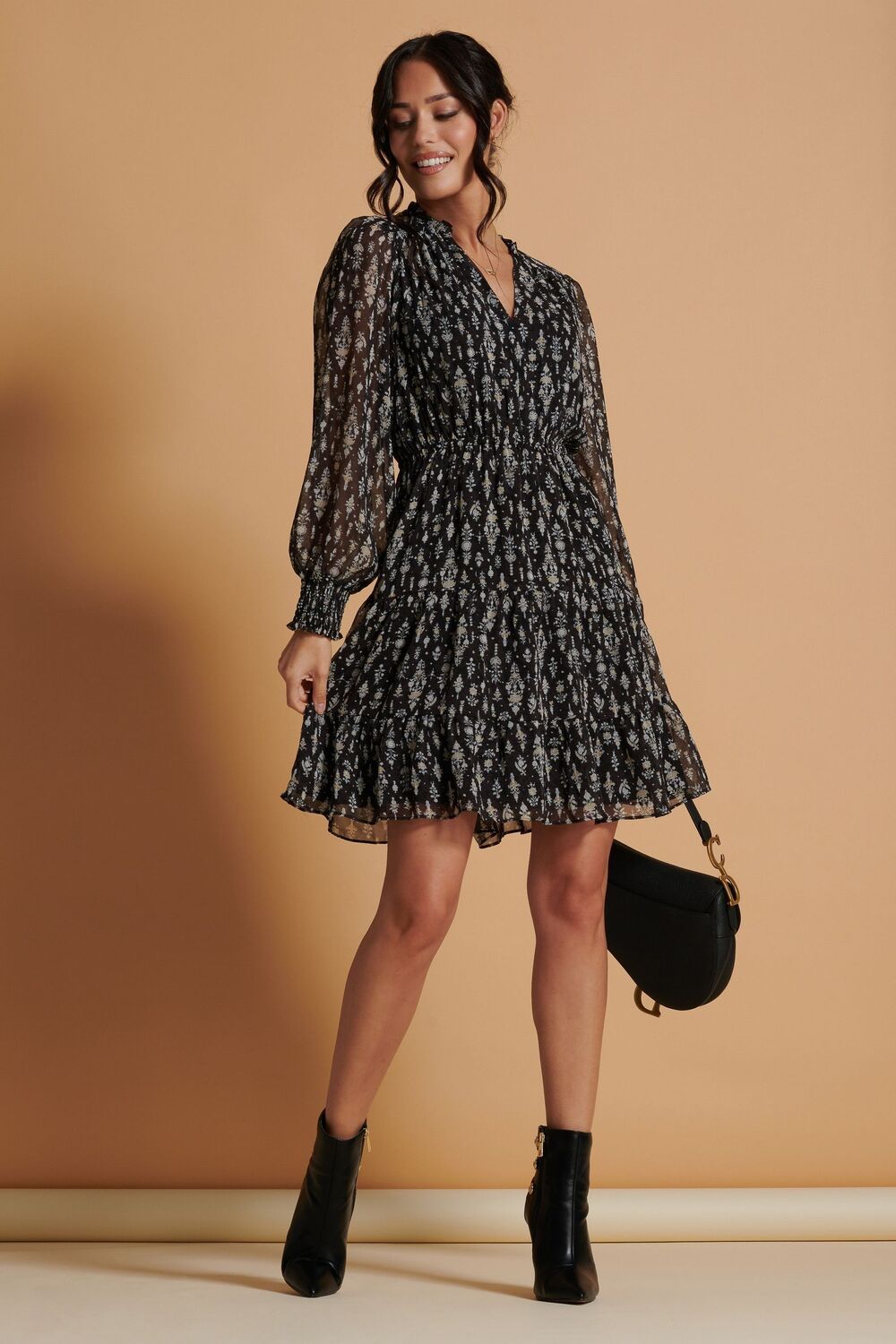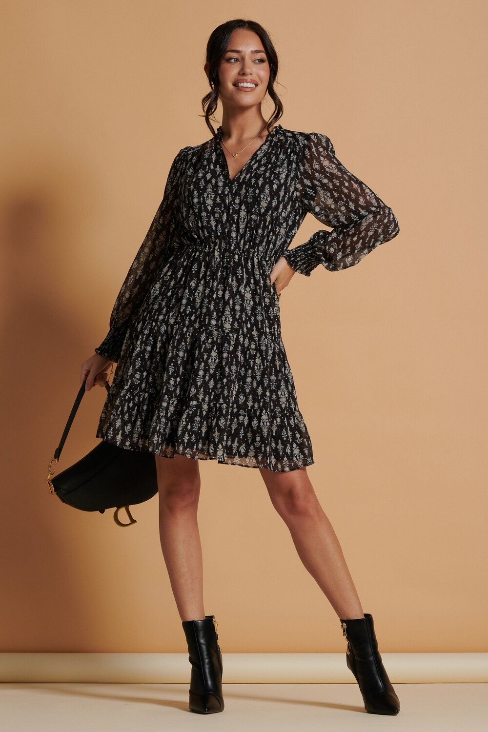 Шифоновое свободное платье с принтом Ditsy Jolie Moi, черный
