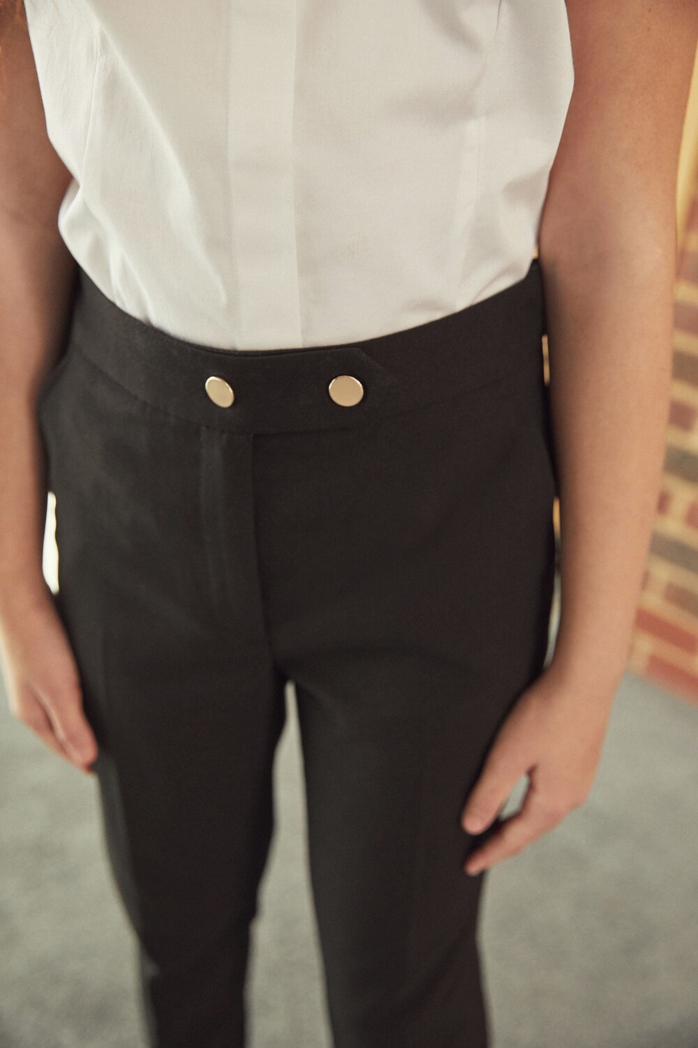 Зауженные брюки с золотыми кнопками (9–18 лет) Next, черный