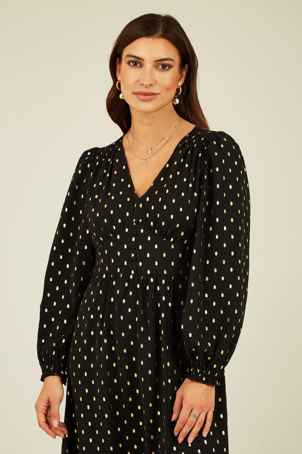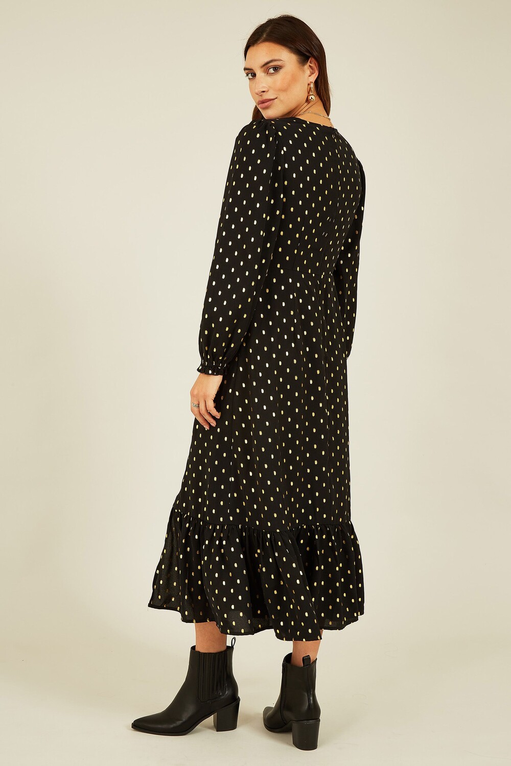 Платье миди с длинными рукавами и принтом из фольги Yumi, черный