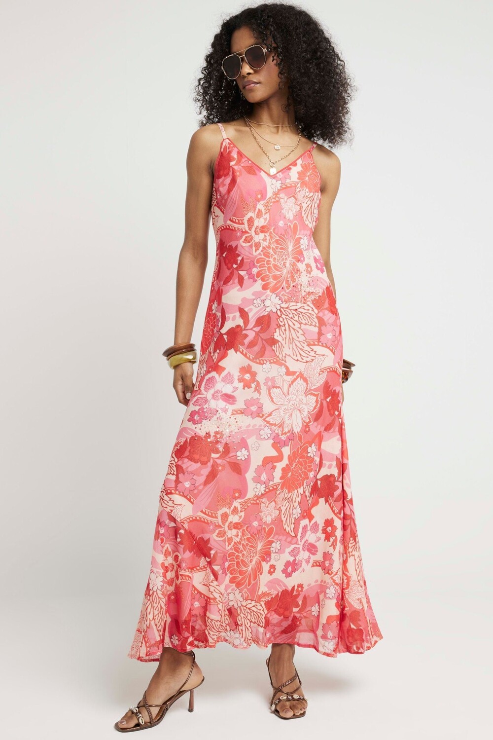 Платье-Комбинация с цветочным принтом River Island, бежевый