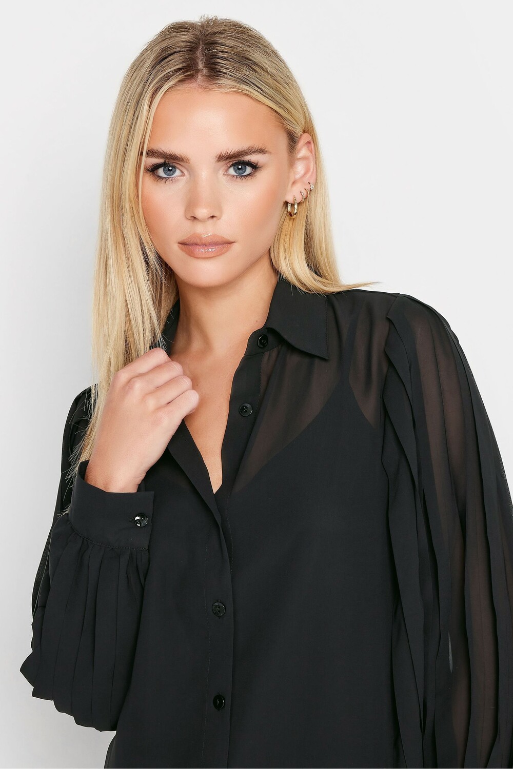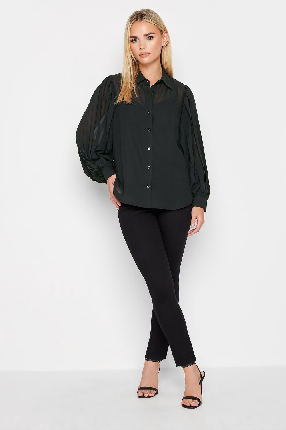 Рубашка с плиссированными рукавами Pixiegirl Petite, черный