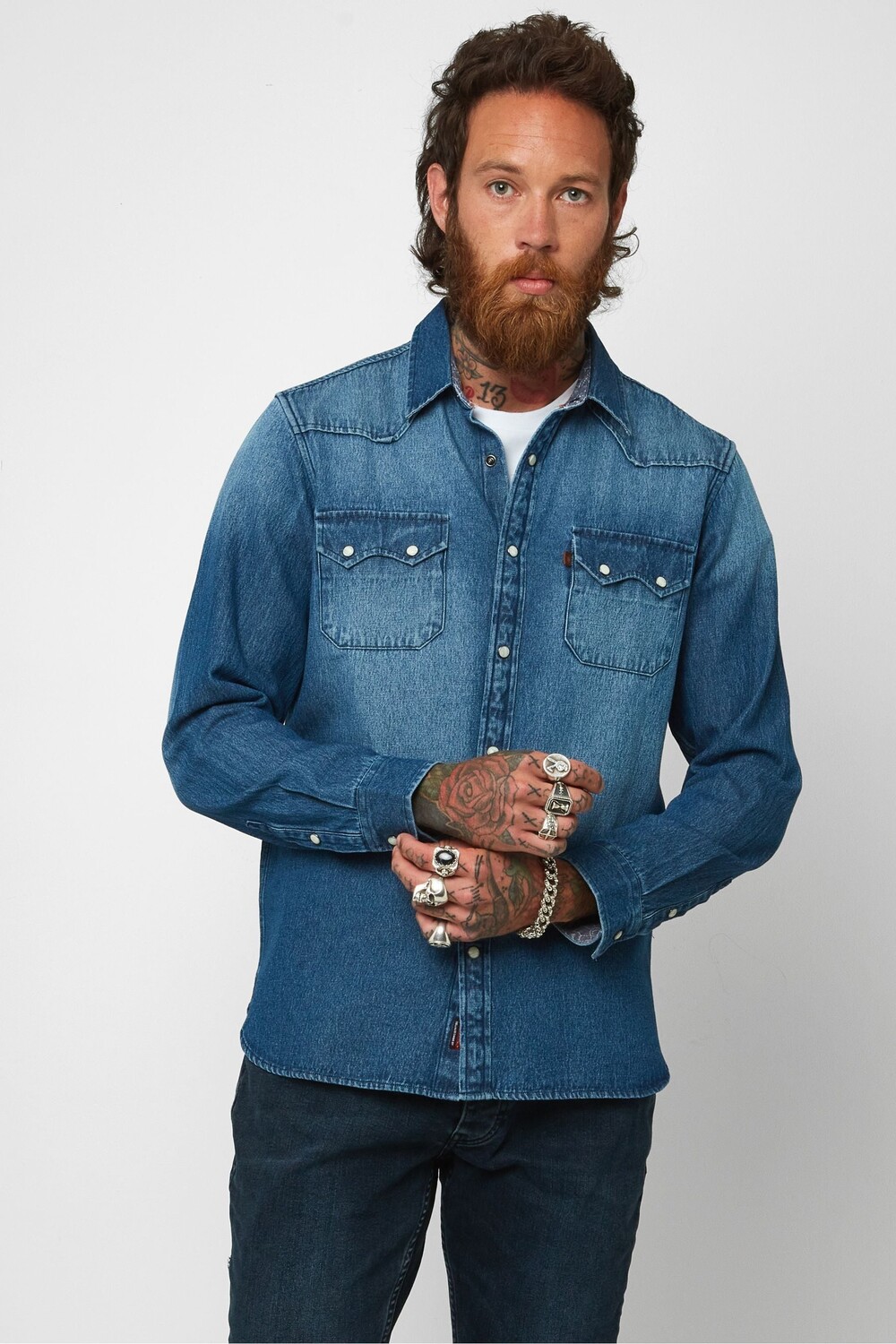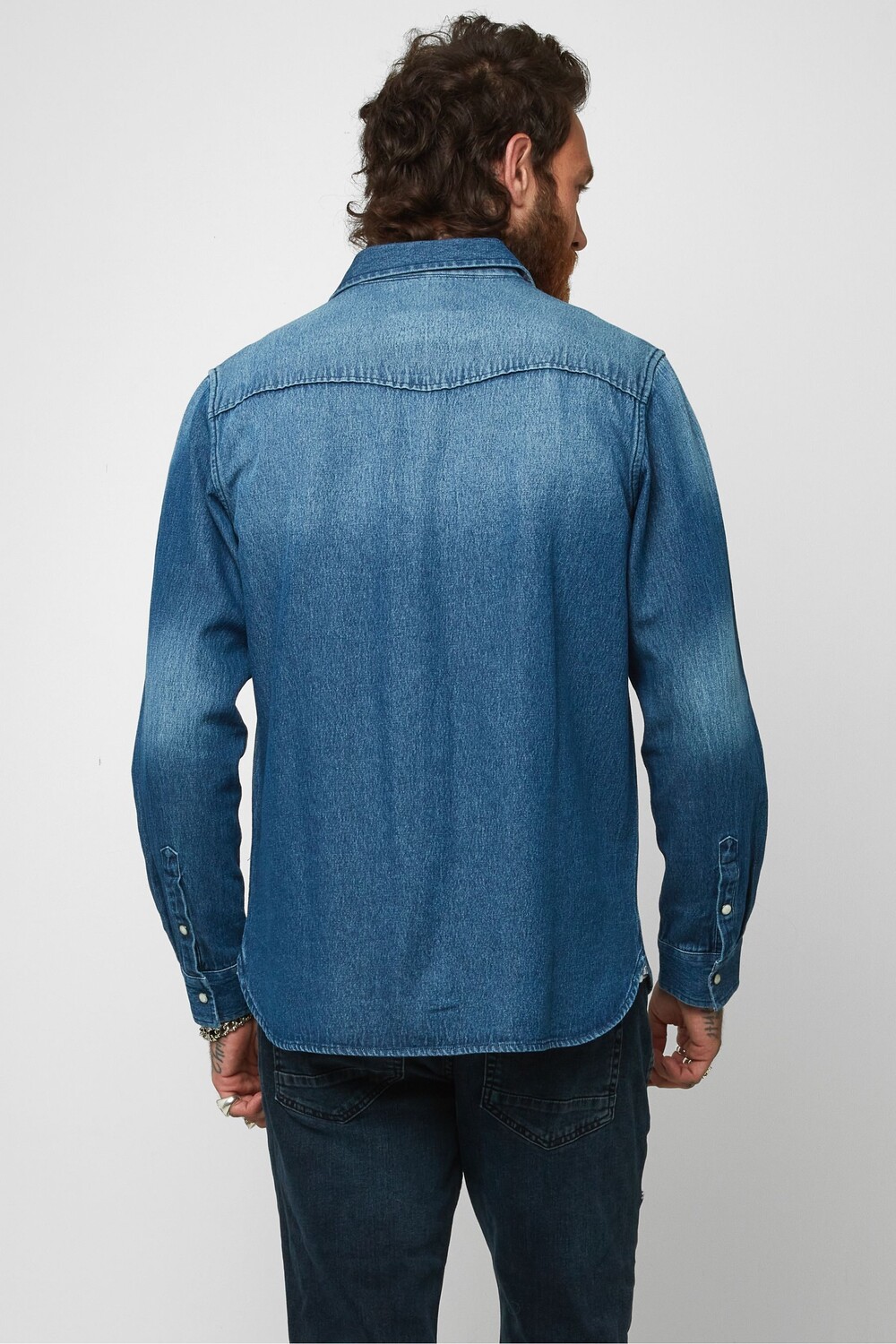 Любил и жил в джинсовой рубашке Joe Browns, синий