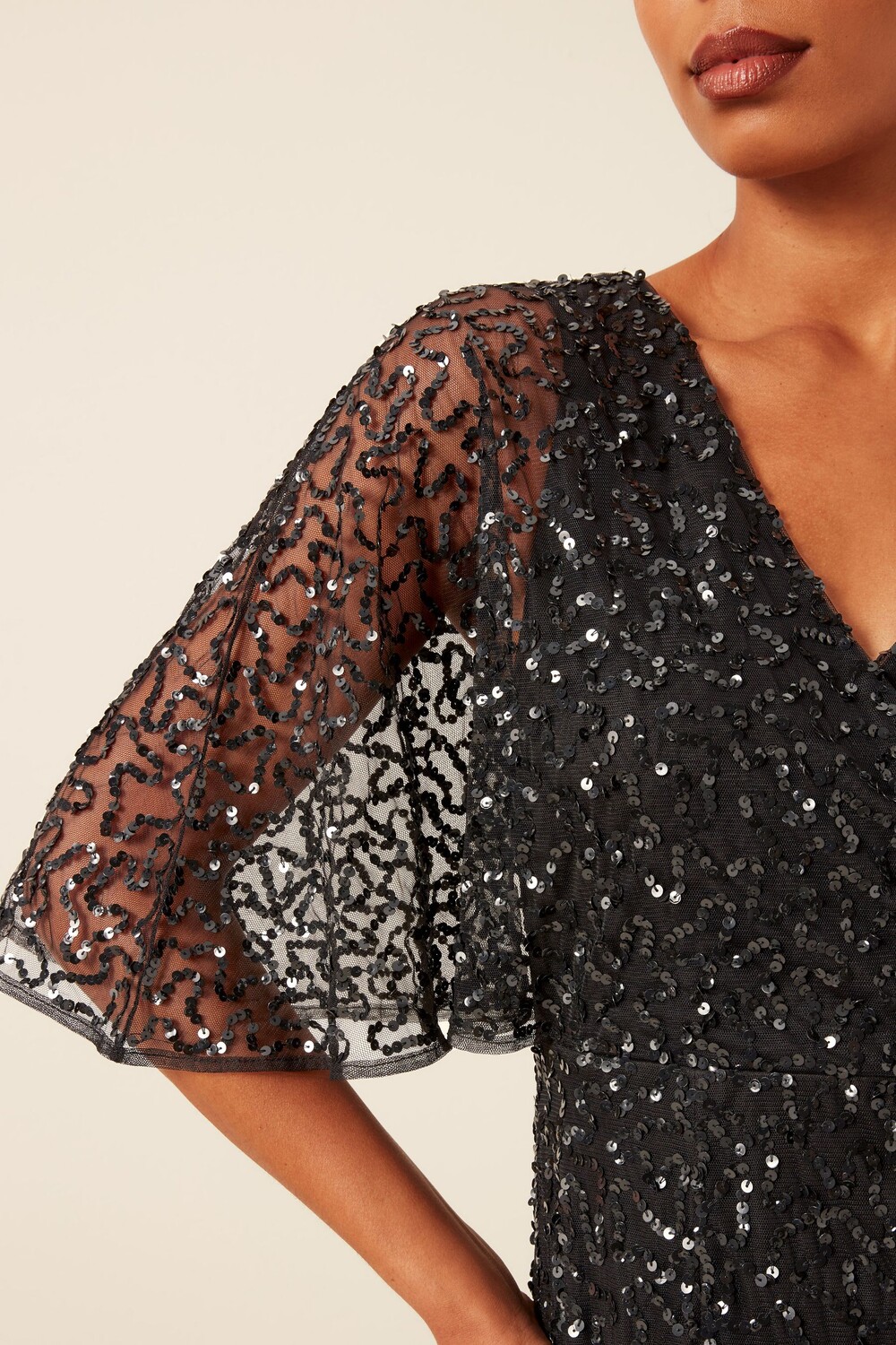 Полностью украшенное платье миди с имитацией застежки-конверта Maya, черный 9 698₽