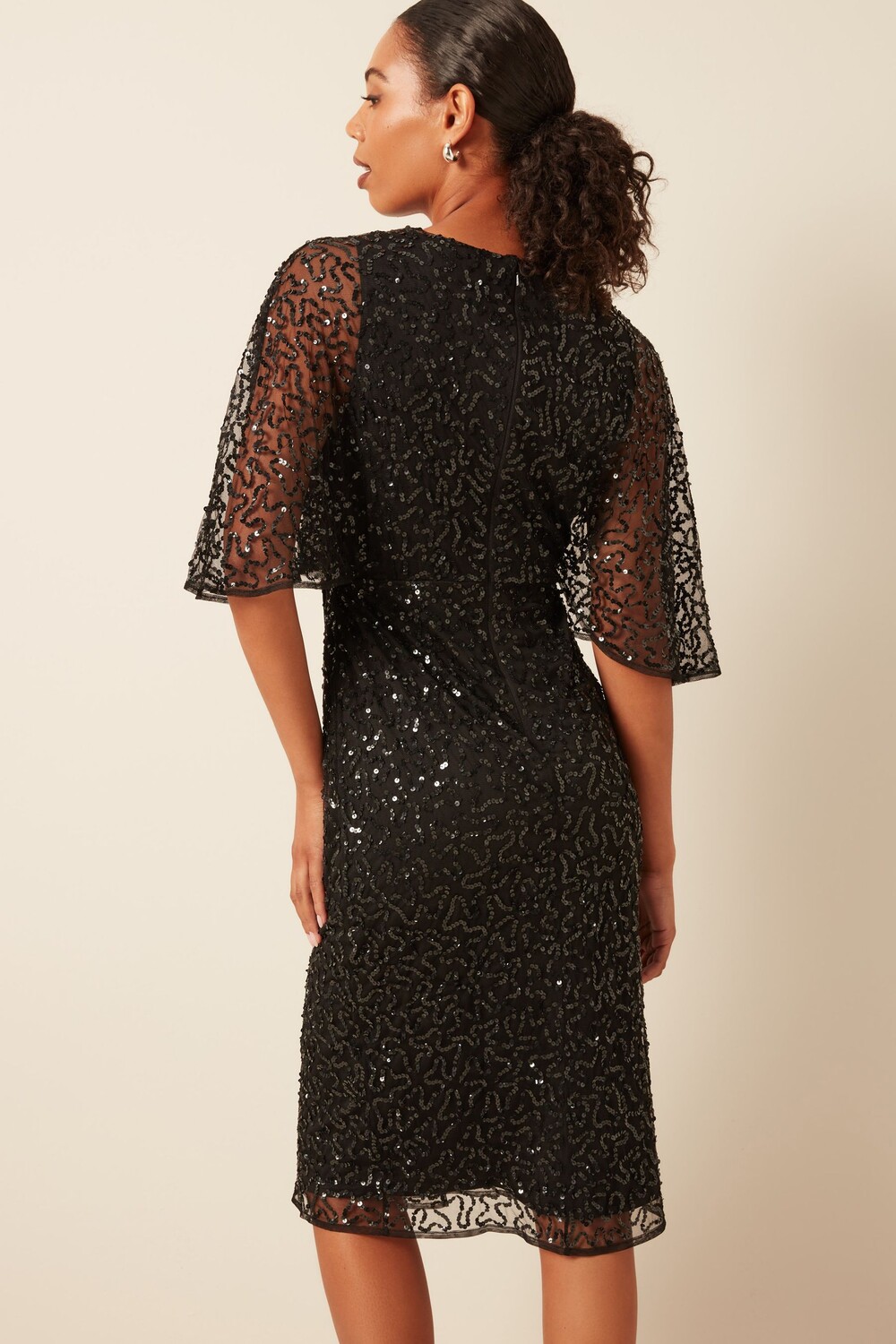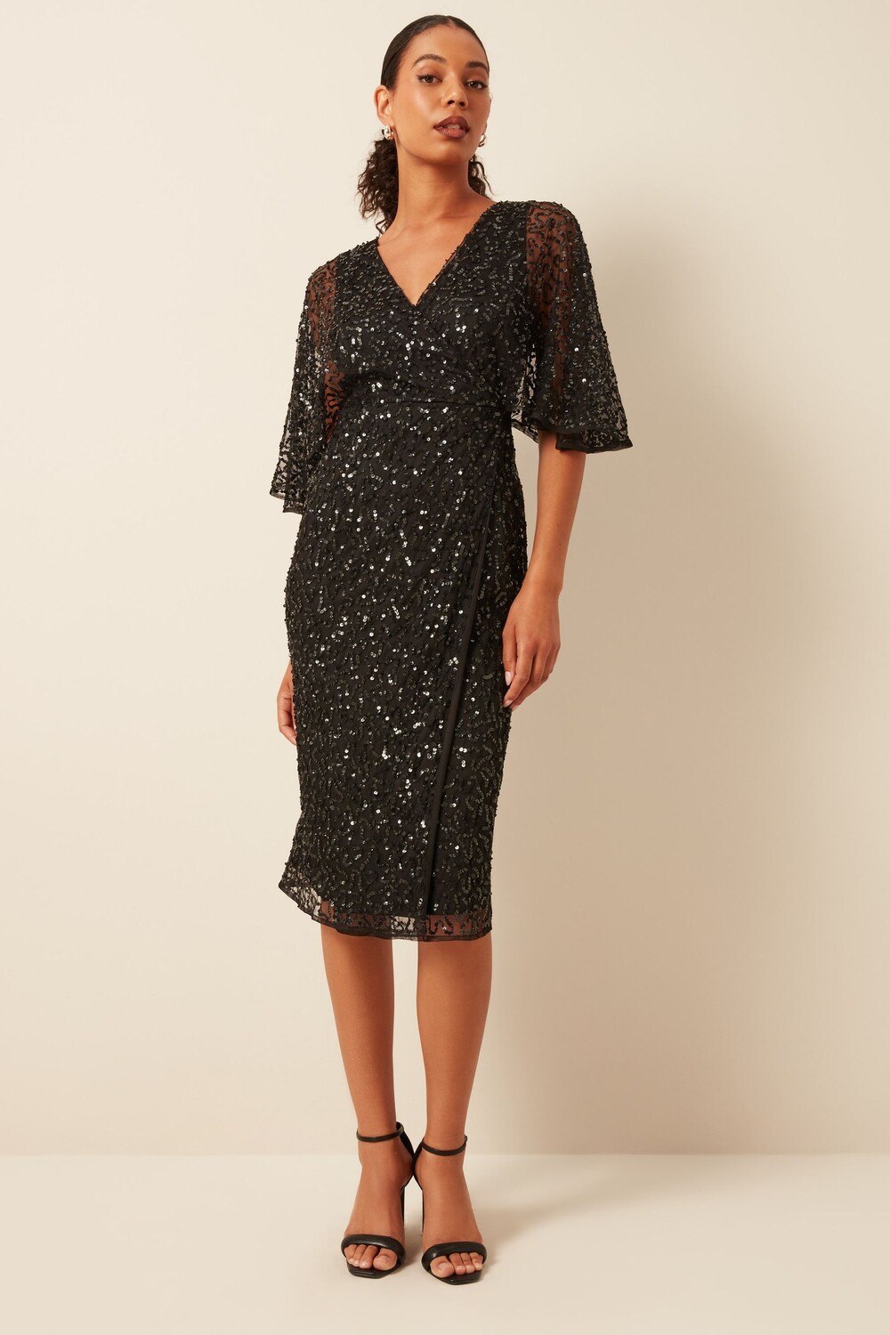 Полностью украшенное платье миди с имитацией застежки-конверта Maya, черный