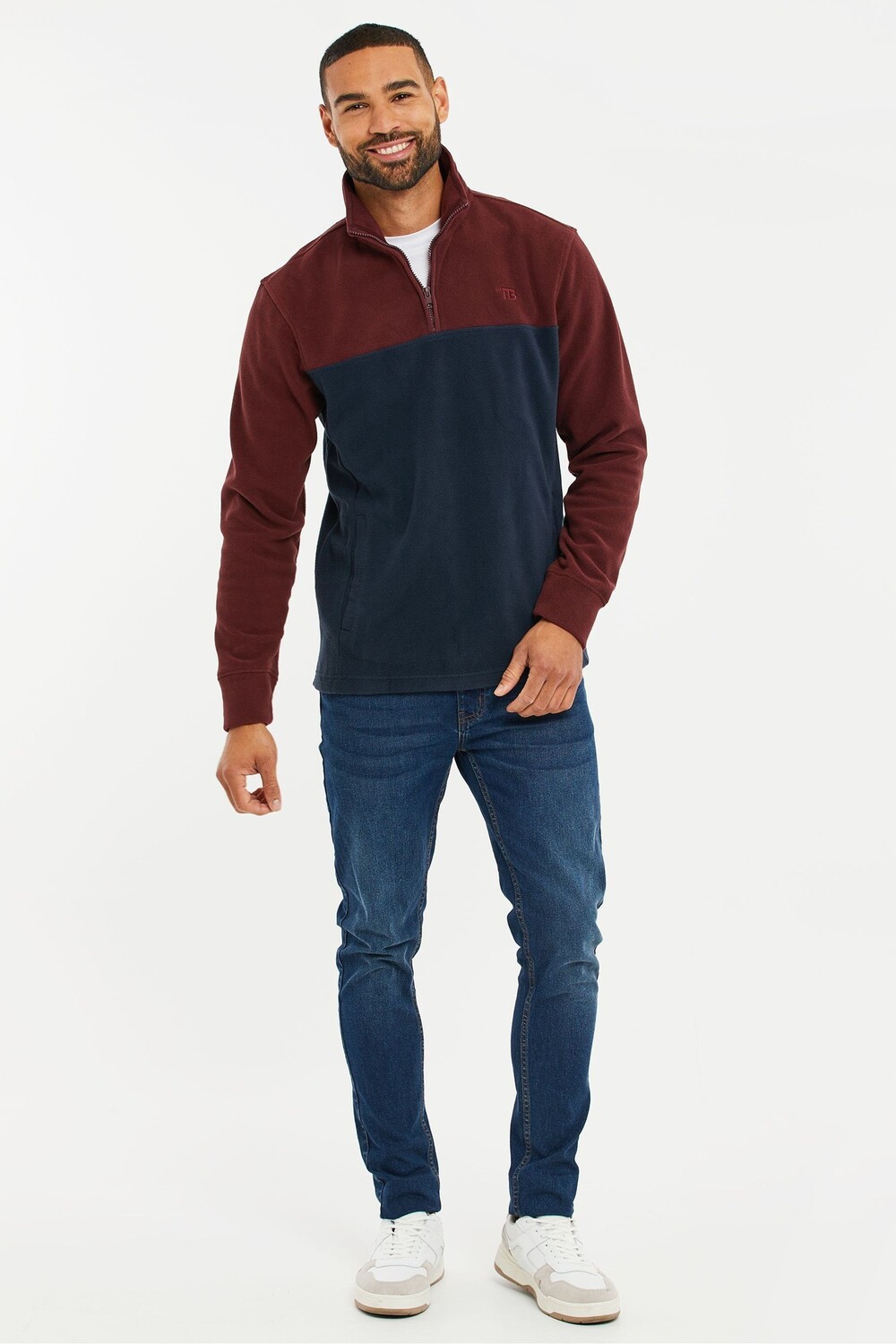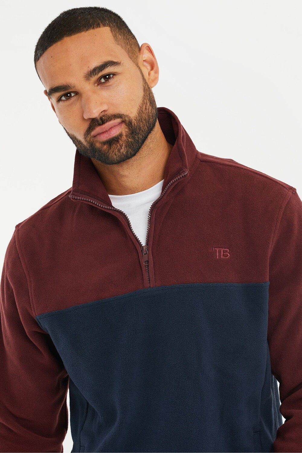 Двухцветный флис с молнией 1/4 Threadbare, красный