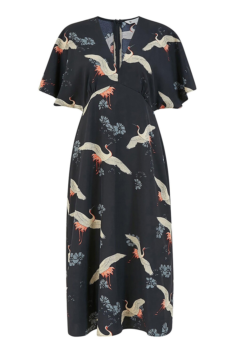 Платье-Кимоно миди с принтом журавля Yumi, черный 12 364₽