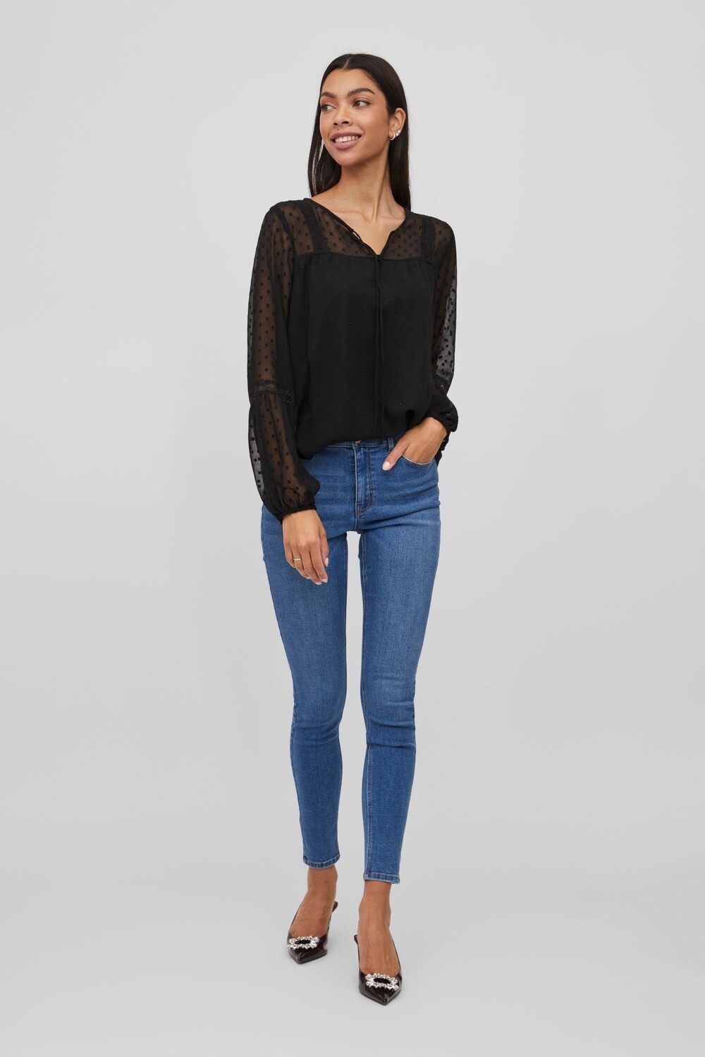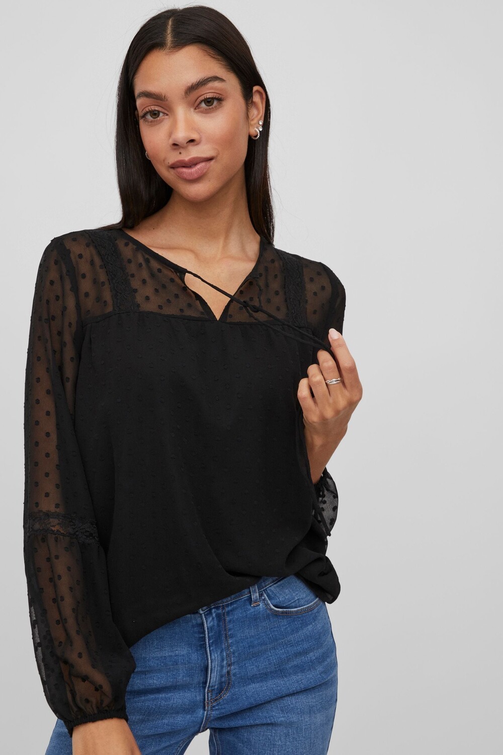 Блузка с фактурой добби и кружевом Vila, черный 7 669₽
