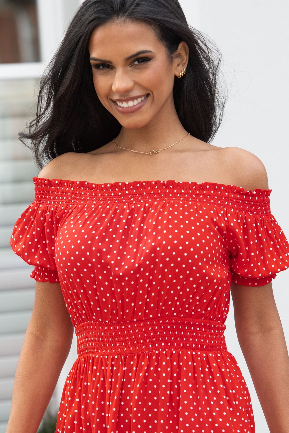 Платье Eloise с пышными рукавами Pour Moi, красный