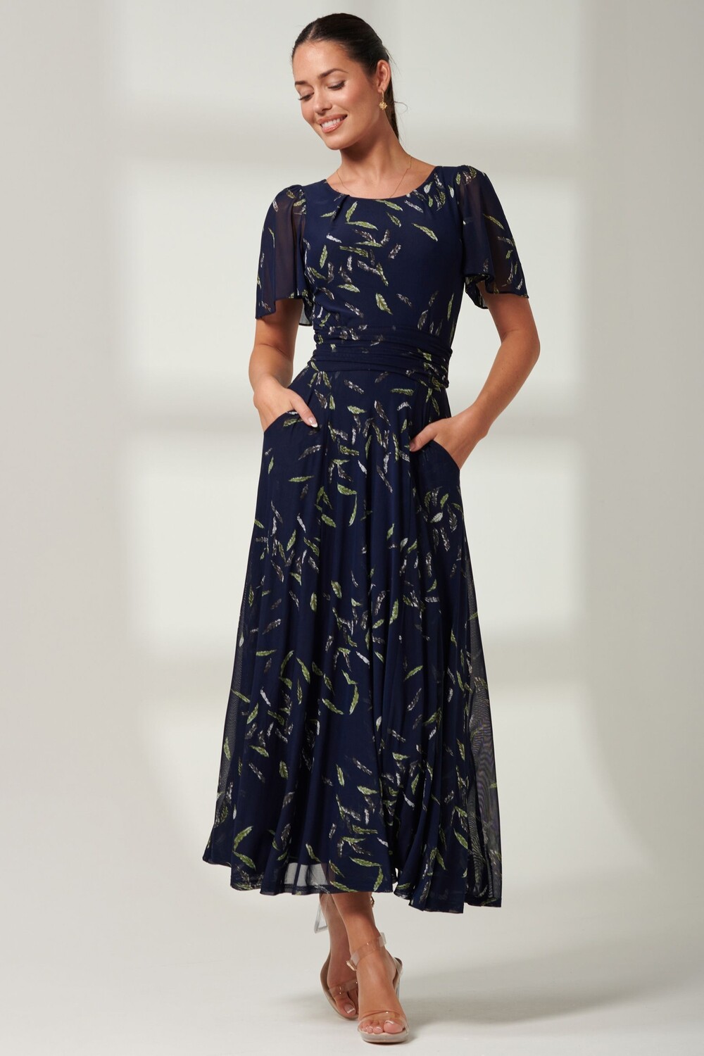 Платье макси из сетки с принтом Elvira Jolie Moi, синий