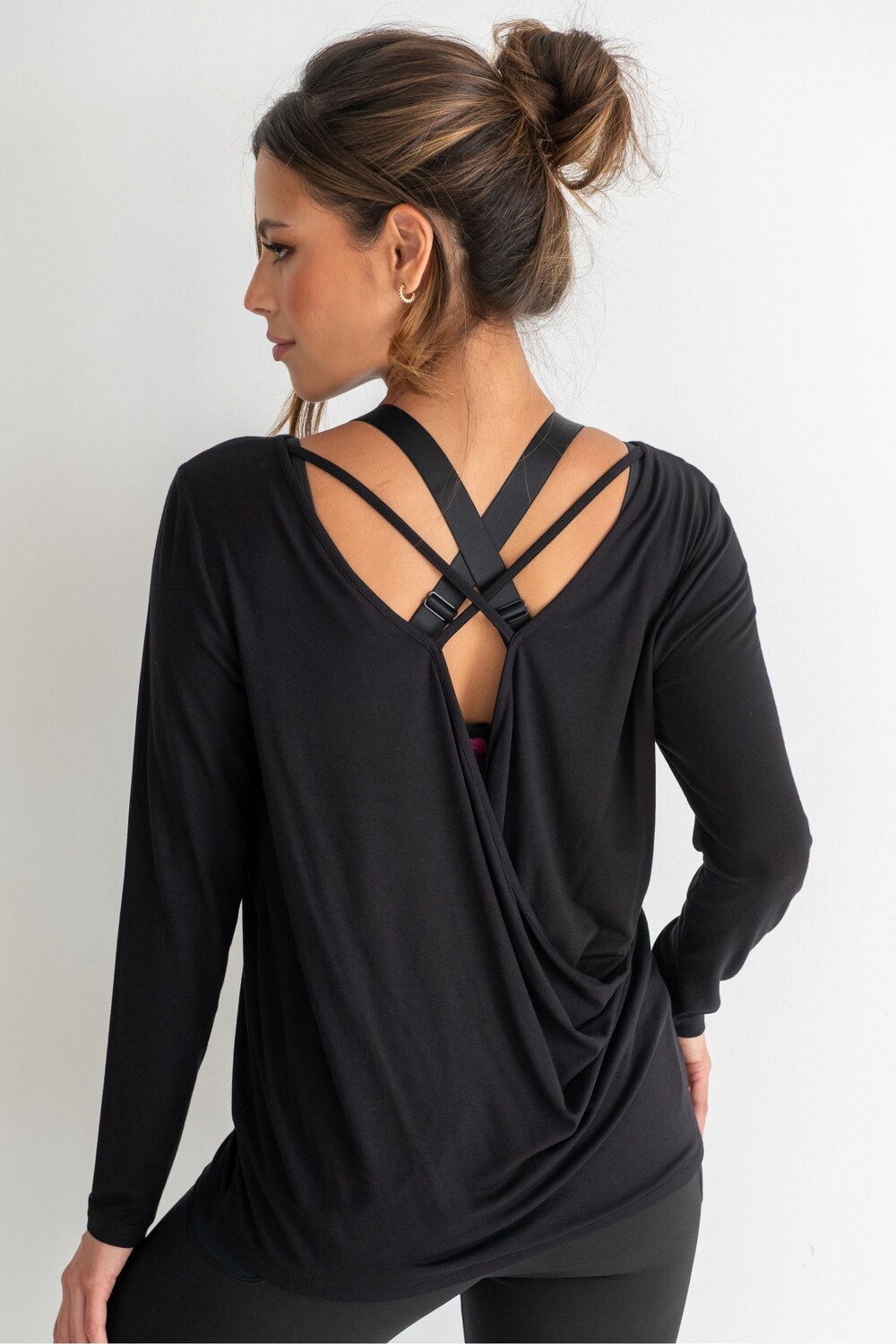 Топ для йоги из джерси со скрещенными бретелями сзади Pour Moi, черный
