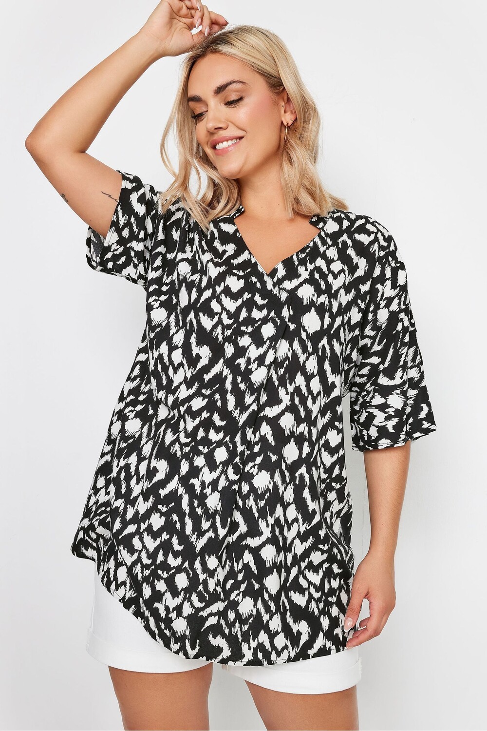 Блузка со складками спереди с ацтекским принтом Yours, черный 4 457₽