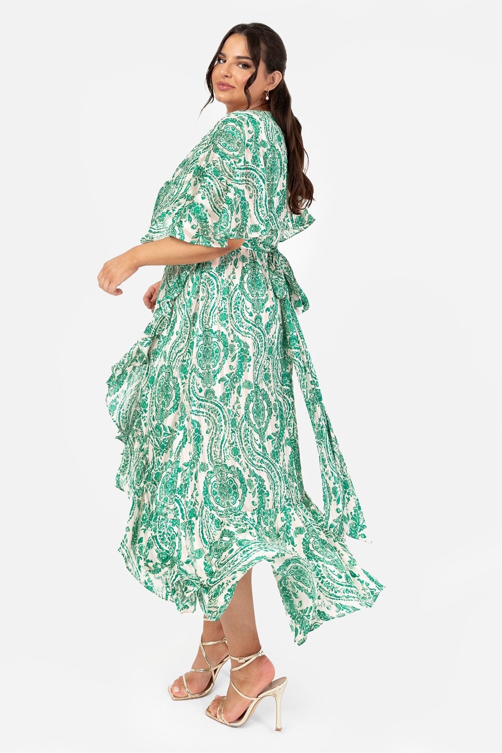 Платье мидакси с вырезом-конвертом и рюшами Lovedrobe, зеленый