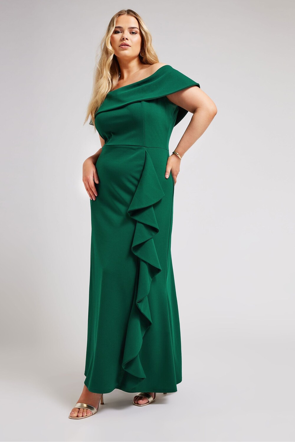 Платье макси London с оборками и бардо Yours, зеленый
